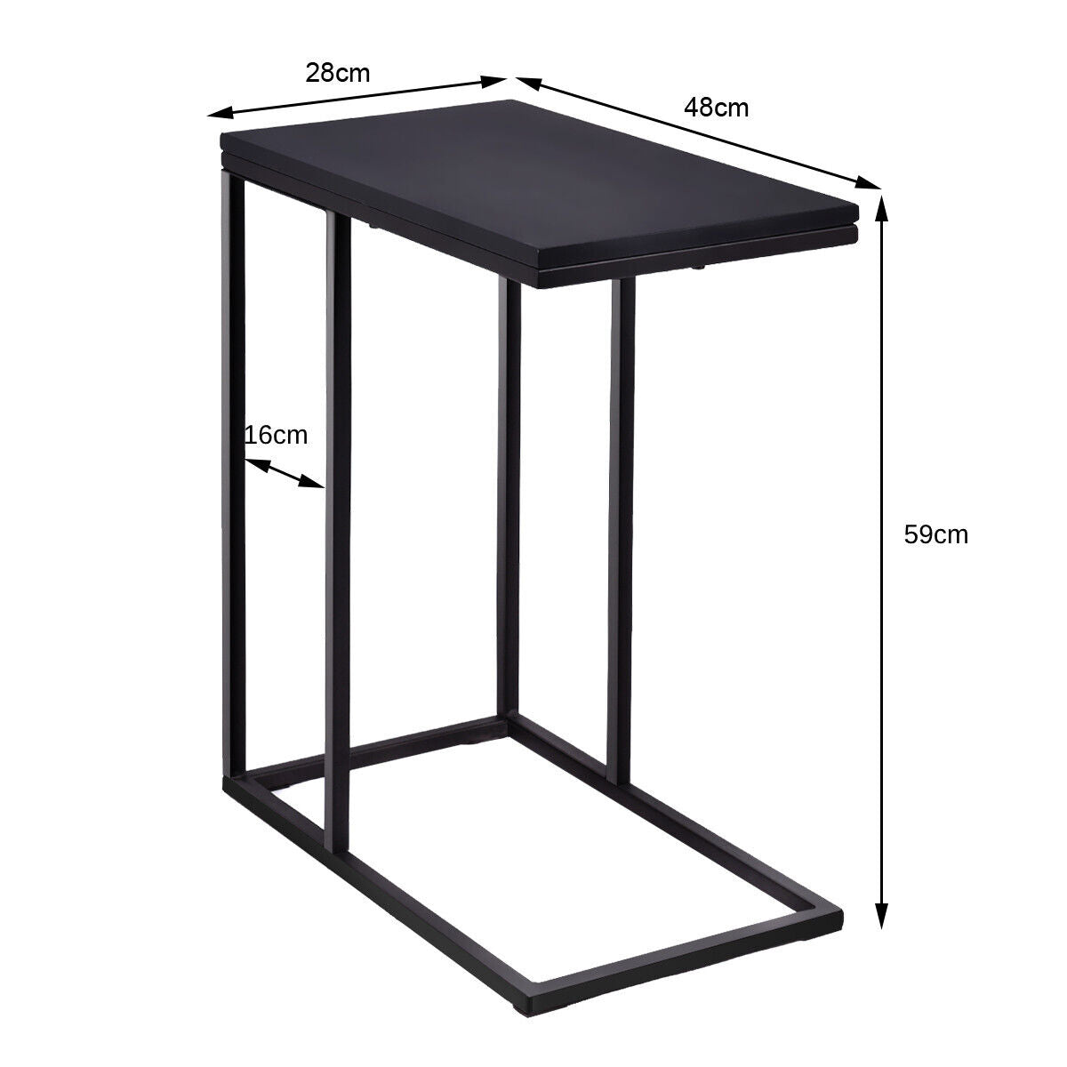 59CM Industrial Narrow End Side Table Modern Metal C-Shaped Side Table Black