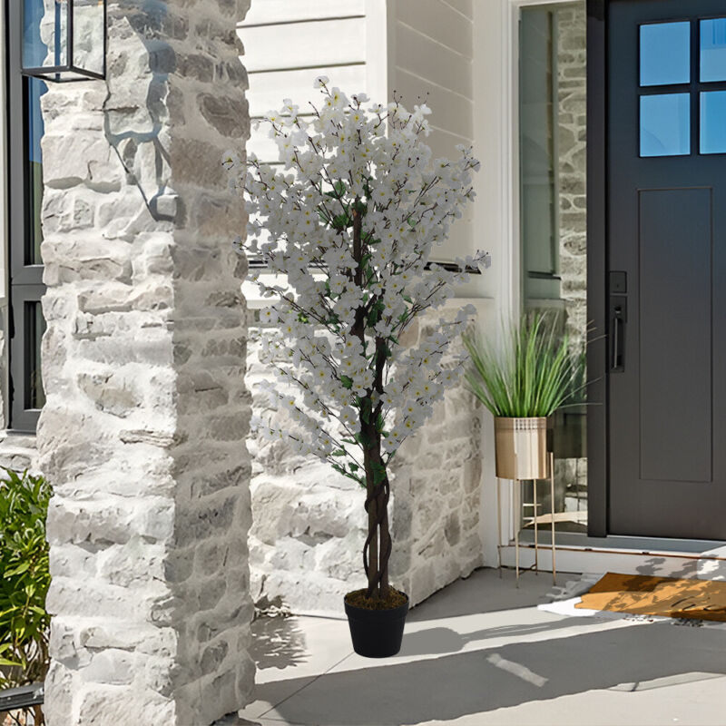 5FT 150cm Artificial Cherry Blossom Tree Fake Potted Plants Home Office Décor