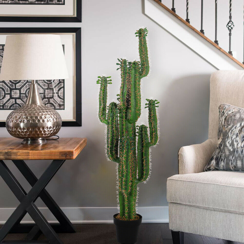 5FT/150cm Tall Artificial Cactus with Pot Realistic Tropical Plant Premium Green
