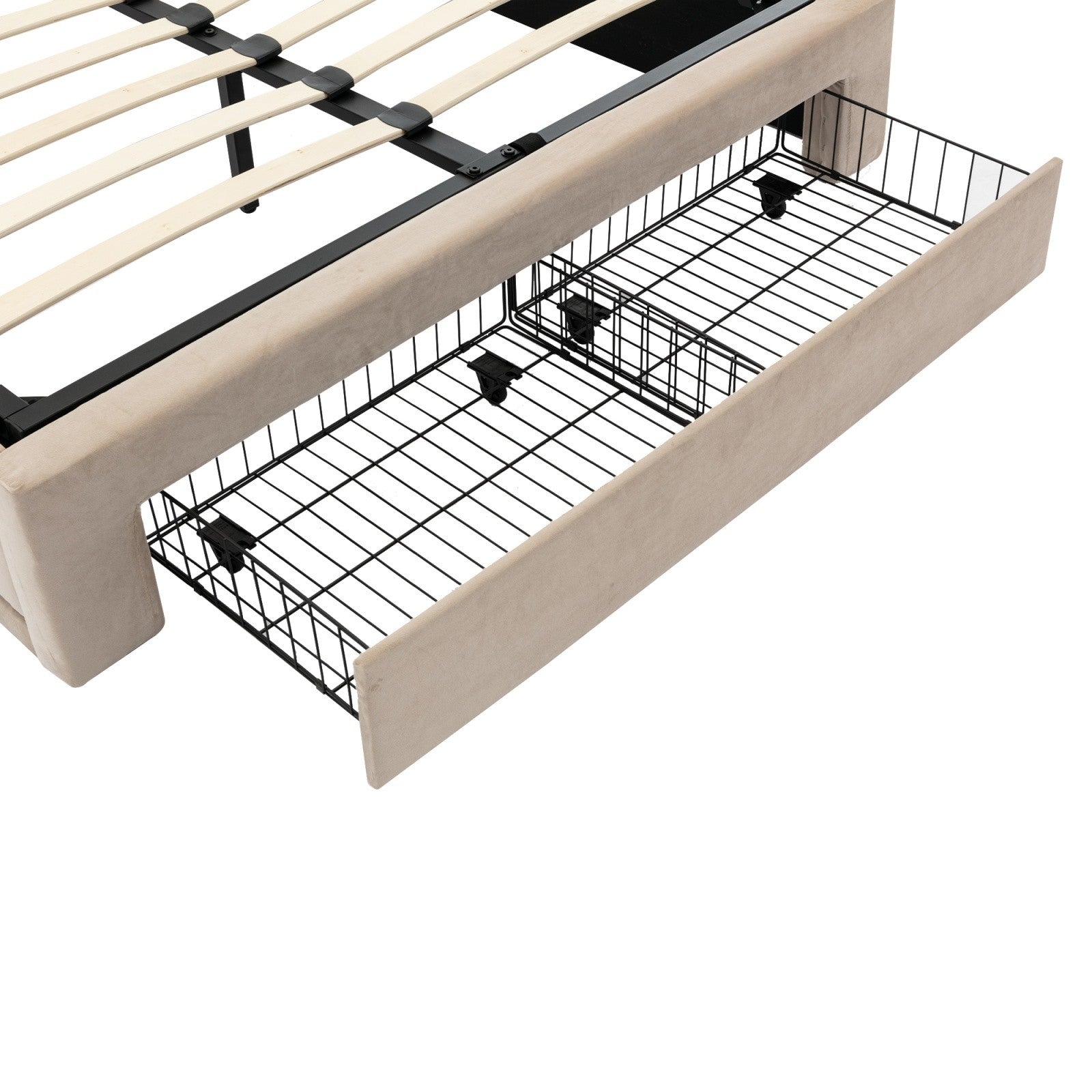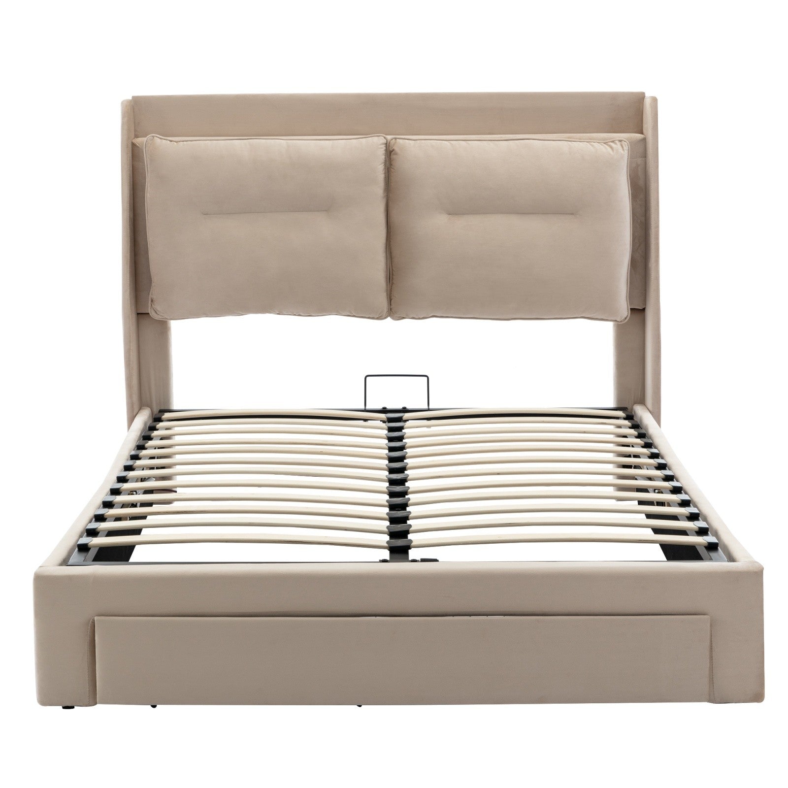 5FT Bed Frame King Velvet Upholstered Ottoman Storage Bed frame with LED, Beige
