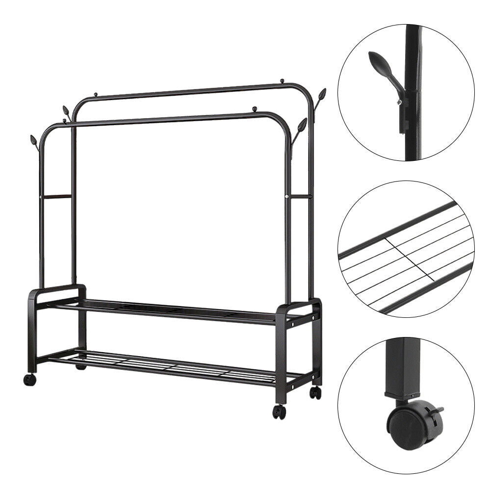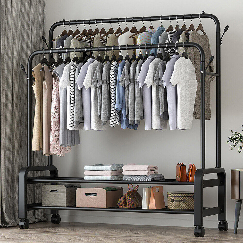 Easy Installation, Hanging, Heavy Duty, Portable, Wheels, With Rack, With Shelf, Coat &Shoe Rack, Double Clothes Rail, Shoe Storage