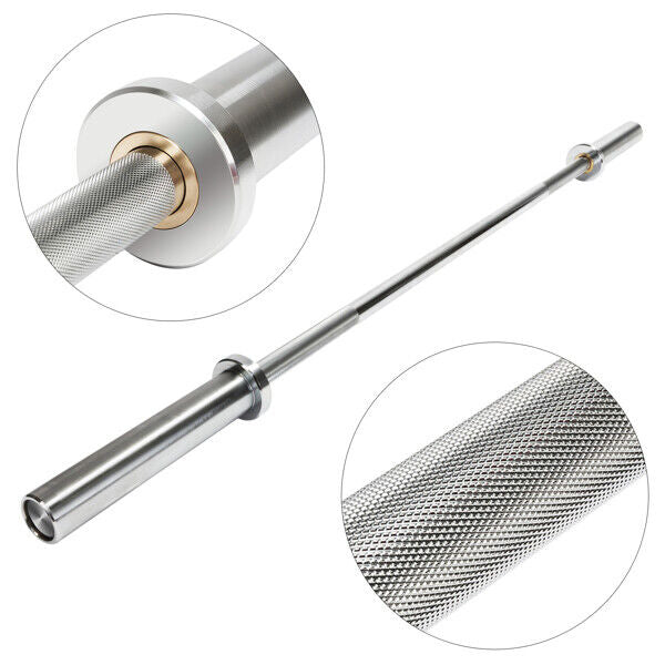 5ft Olympic Barbell Bar Spring Clips Gym Weight Lifting Fitness Non-slip Silver