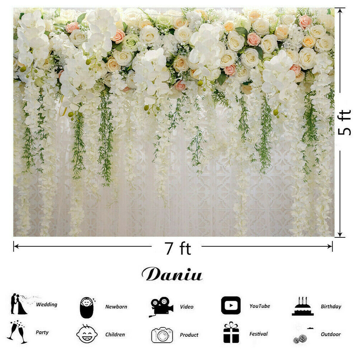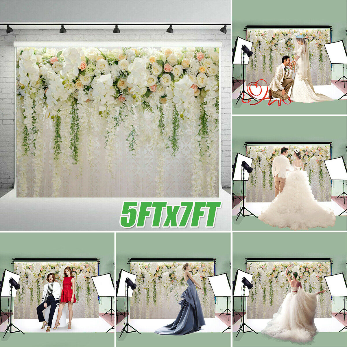 5FTx7FT Rose Flower Wall Backdrops Wedding Photography Photo Studio L ⌒