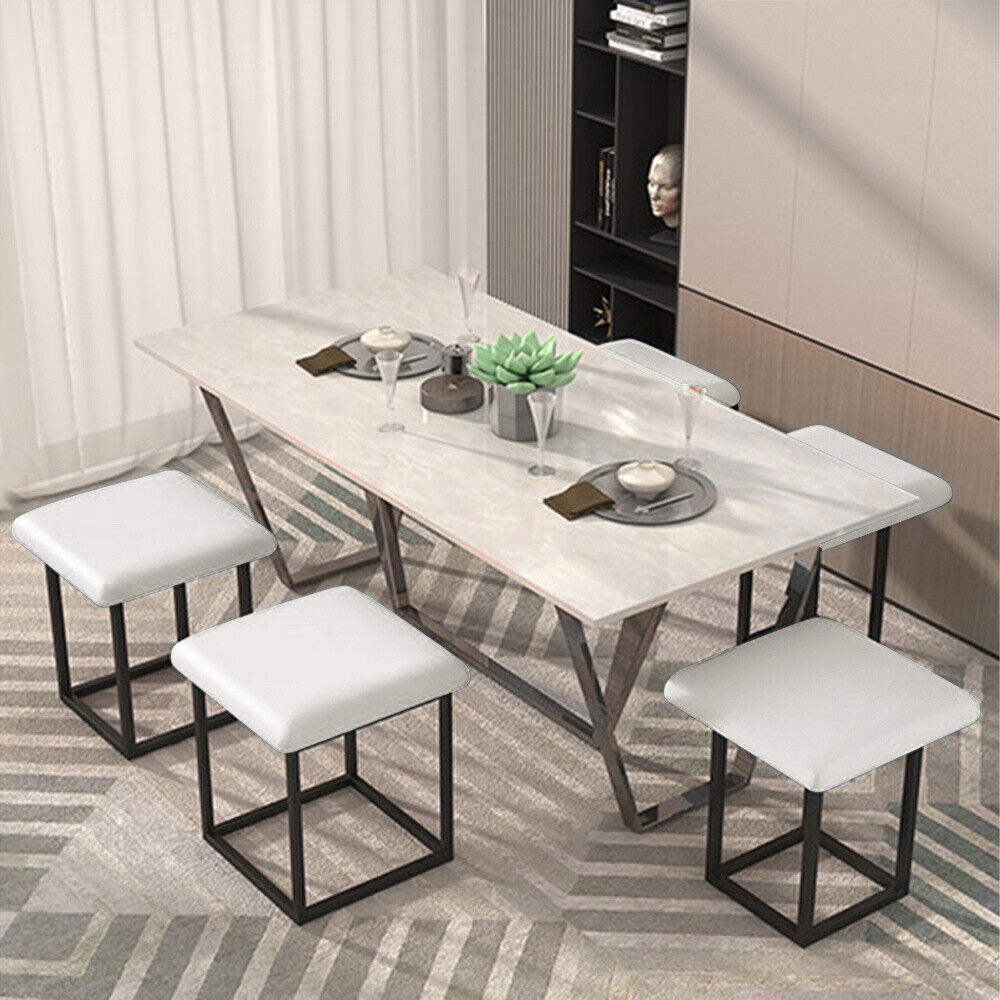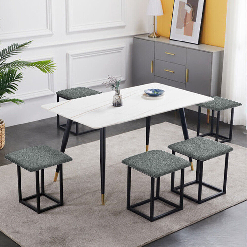5in1 Stackable Storage Ottoman Seat Stool Toy Nesting Box Linen/PU Pouffe Chairs