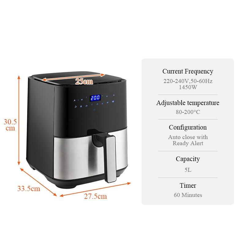 5L Air Fryer Power Oven Cooker LED Touch Oil Free Low Fat Frying Black Modern