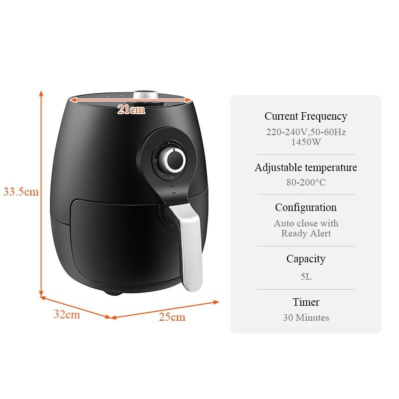 5L Air Fryer Power Oven Cooker Oil Free Low Fat Frying Black Kitchen