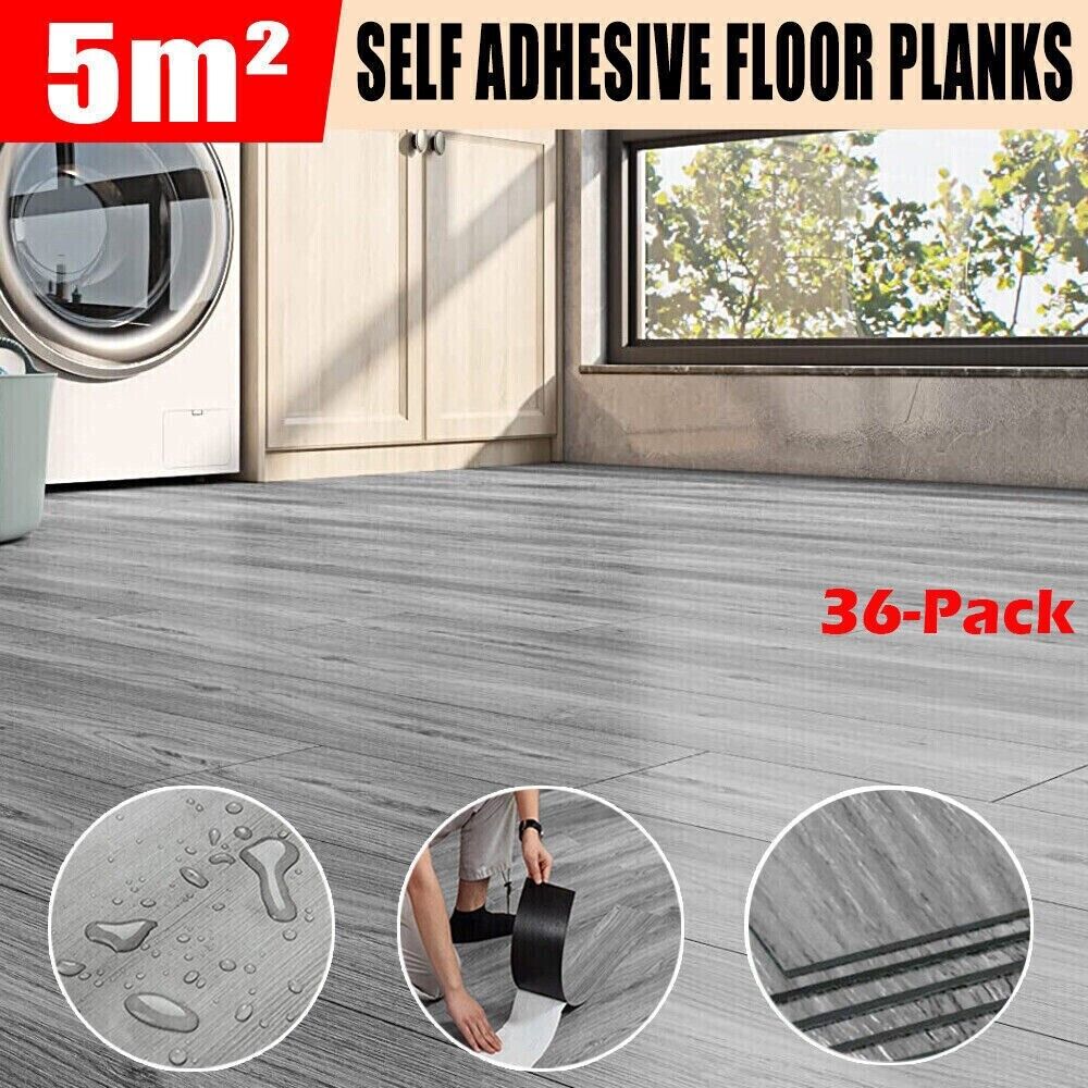 5m²/36Pack Self-adhesive Tiles Thick Wood Effect PVC Flooring Plank Waterproof