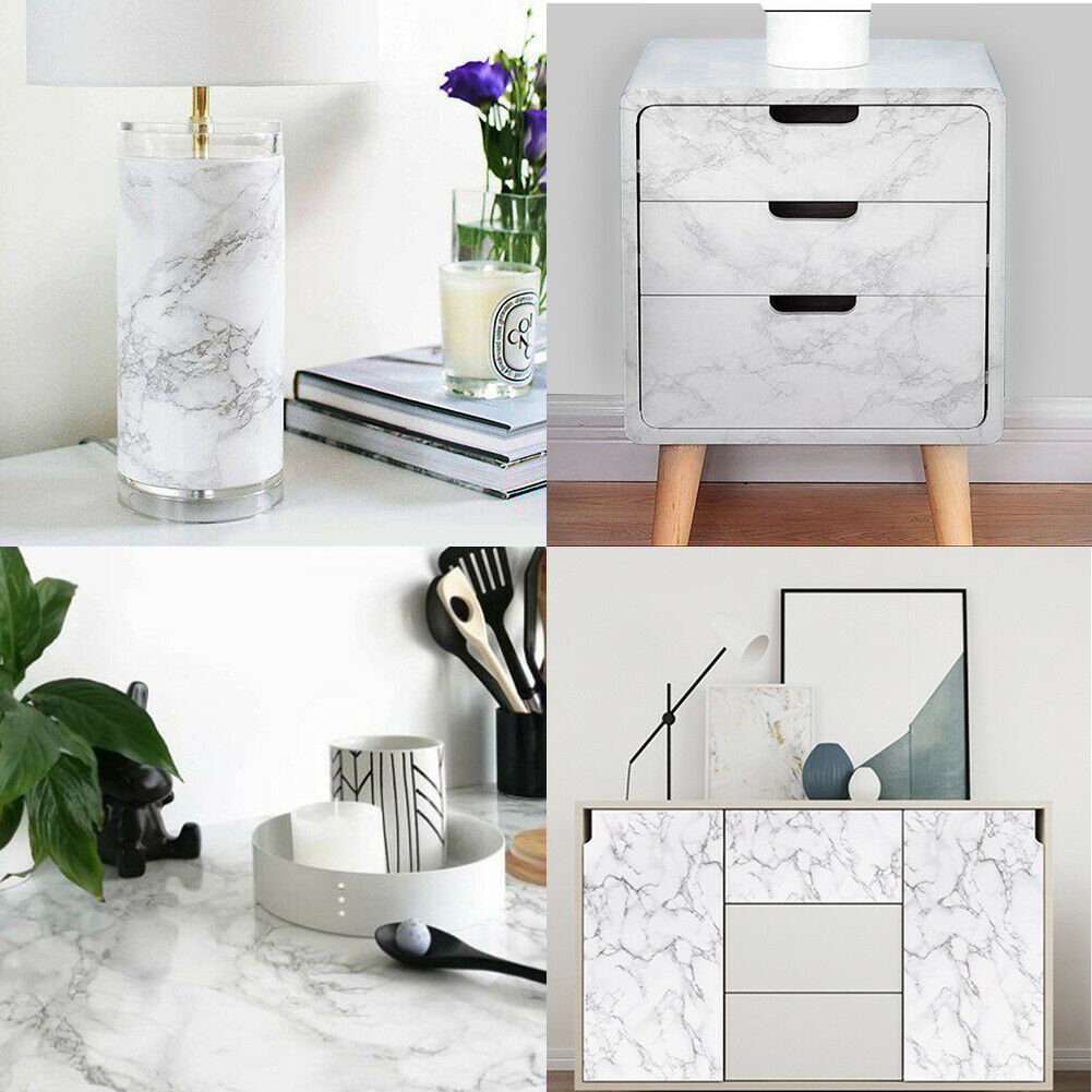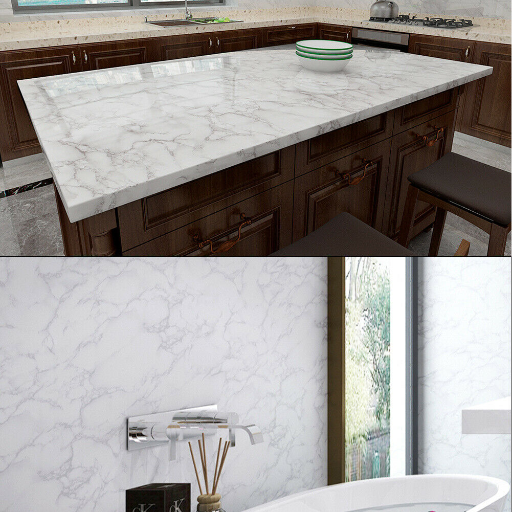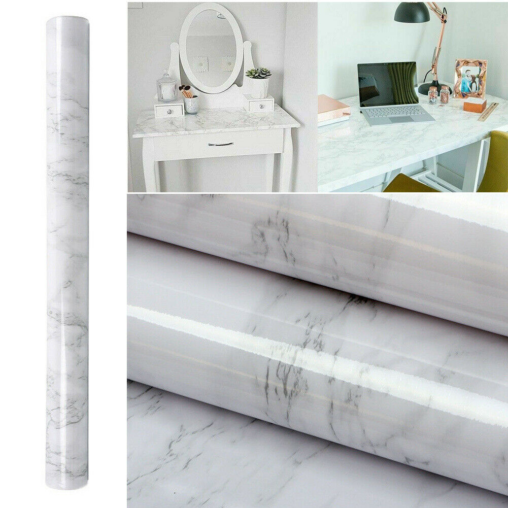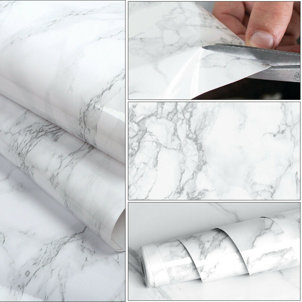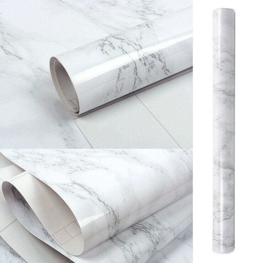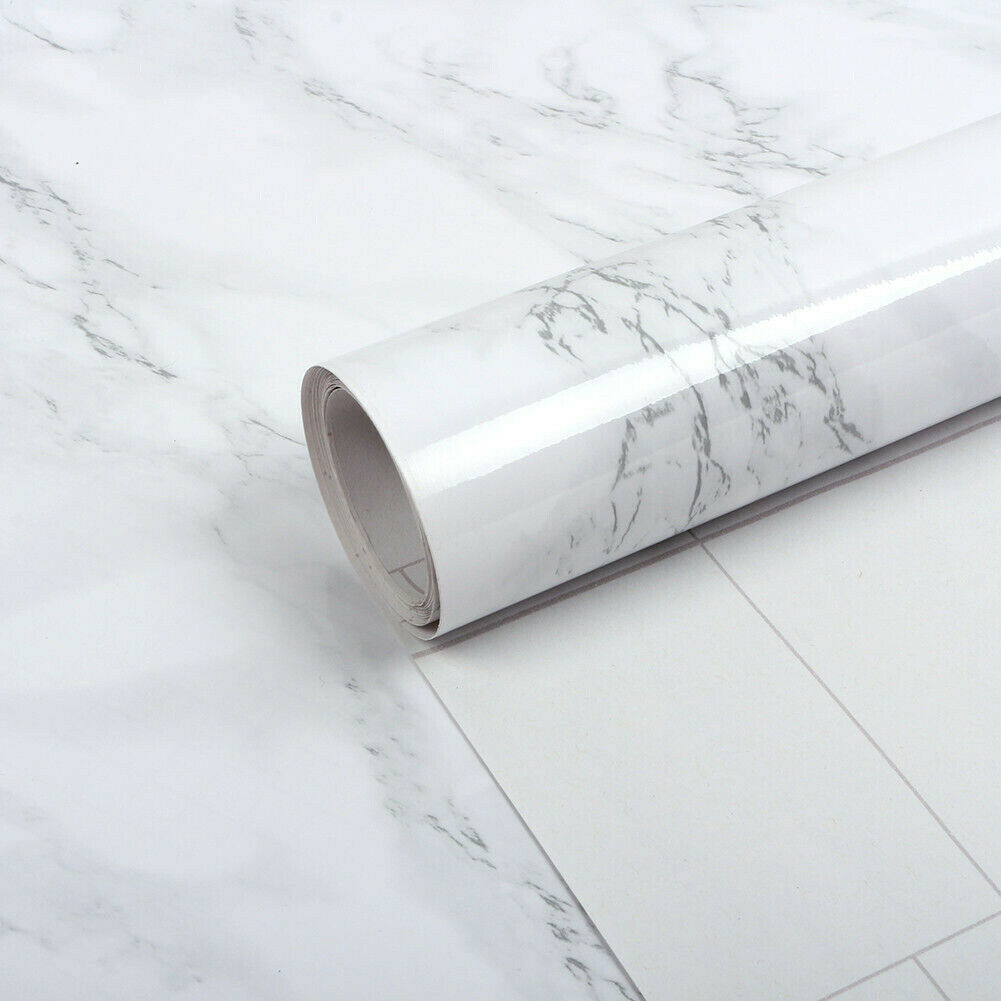 5M Glossy White Grey Marble Vinyl Film Wrap Sticky Back Self Adhesive Sticker