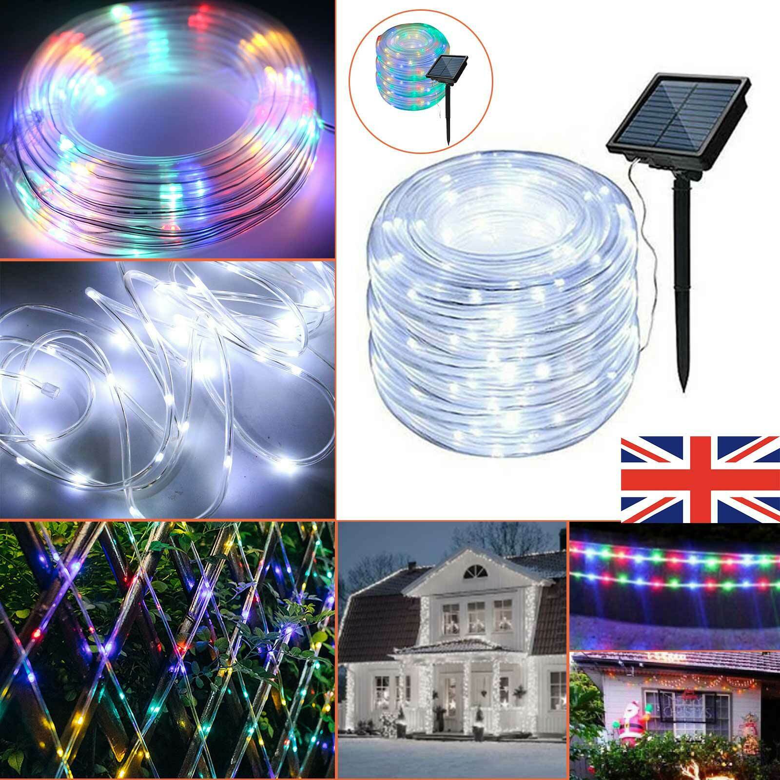 5M LED Rope Strip Tube String Fairy Solar Power Garden Party Outdoor Light