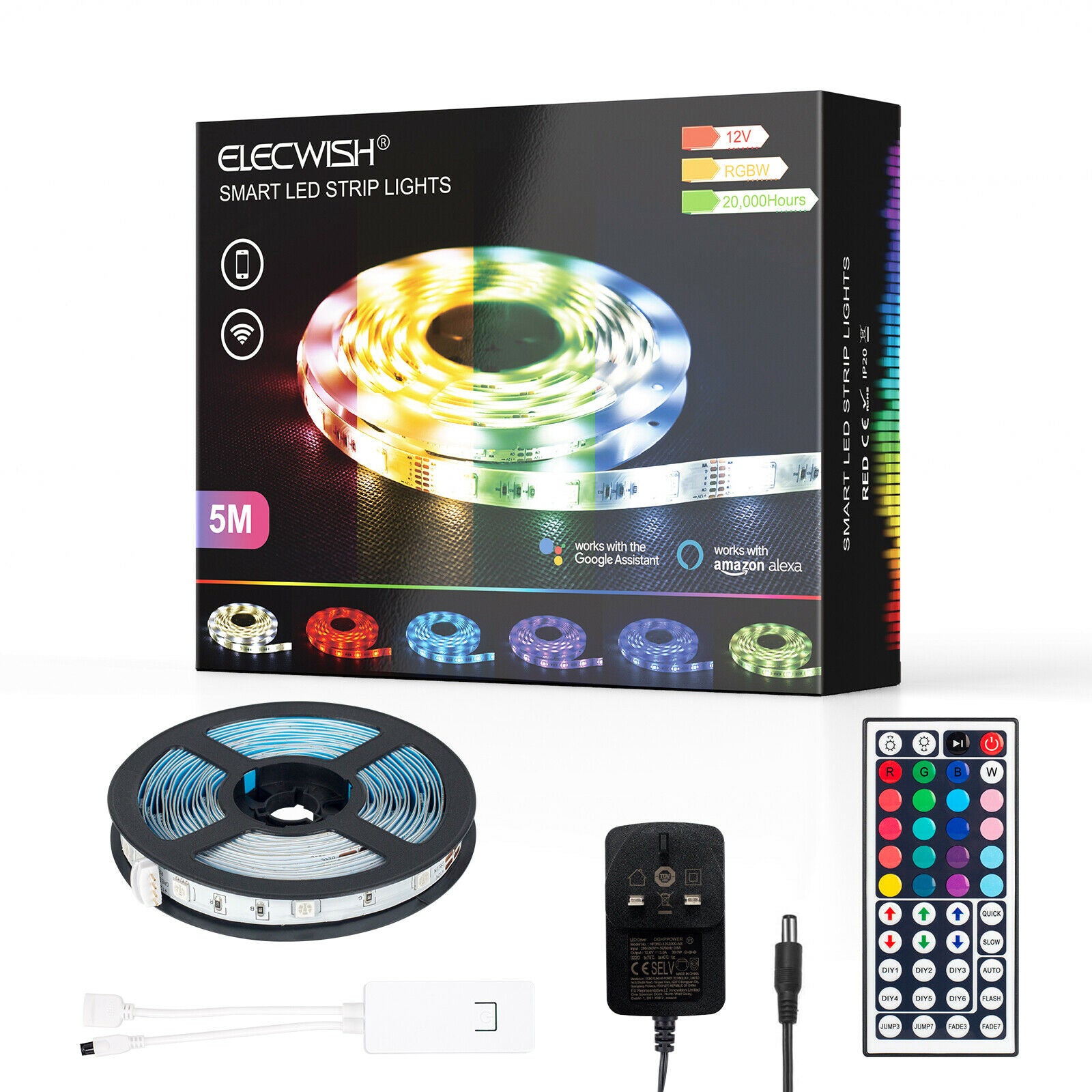 5M Smart 5050 LED Strip TV Back Lights Wifi RGB Alexa Google Home w/Remote 12V