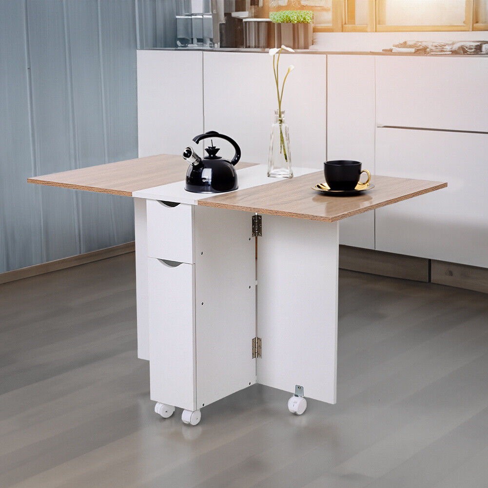 Drop-Leaf Table, Folding, Space Saving, With Drawers, With Shelf, Drop Leaf Table, With 4 Wheels
