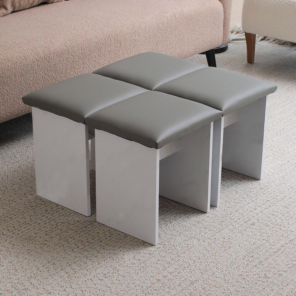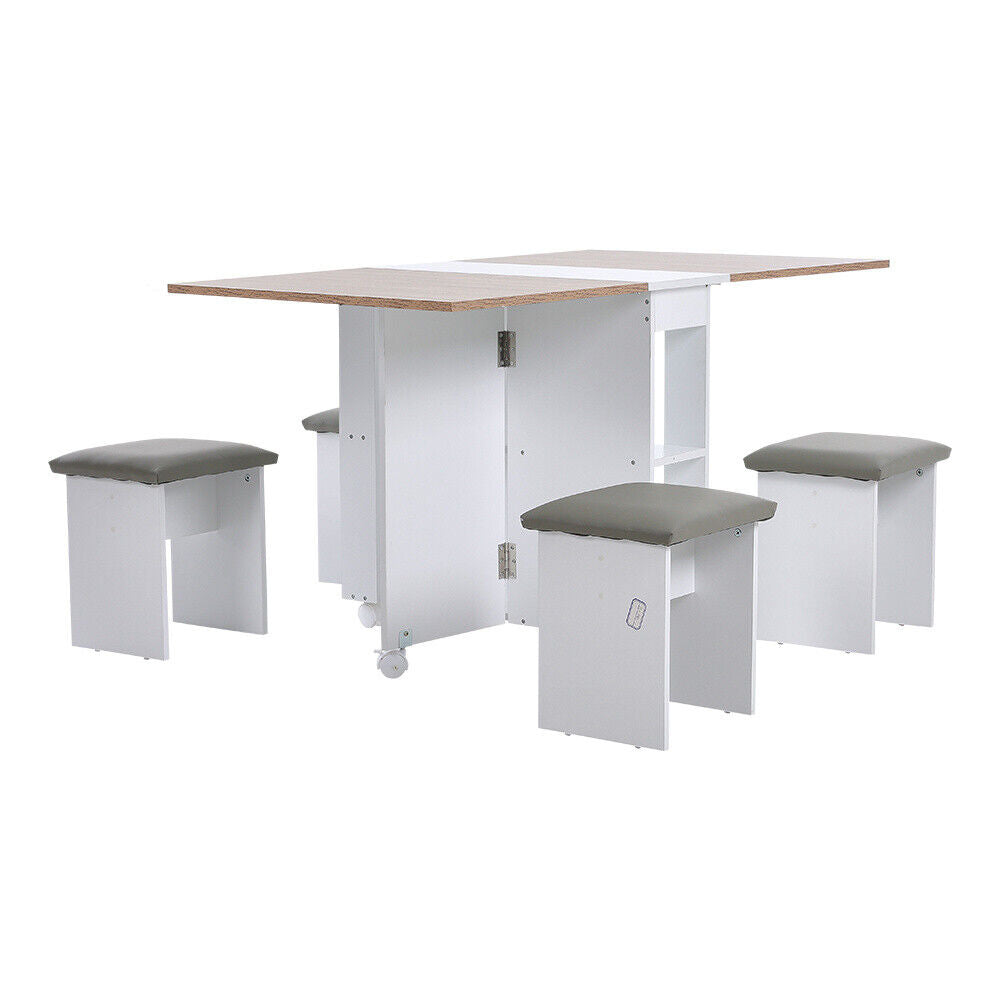 5PC Dining Set Wooden Folding Drop Leaf Butterfly Table Cushioned Ottoman Seats