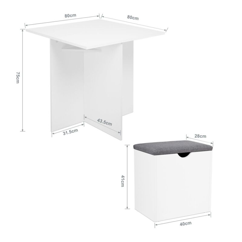 5PC Wooden Dining Table Set 4 Stool Compact Space Saver Kitchen Furniture White