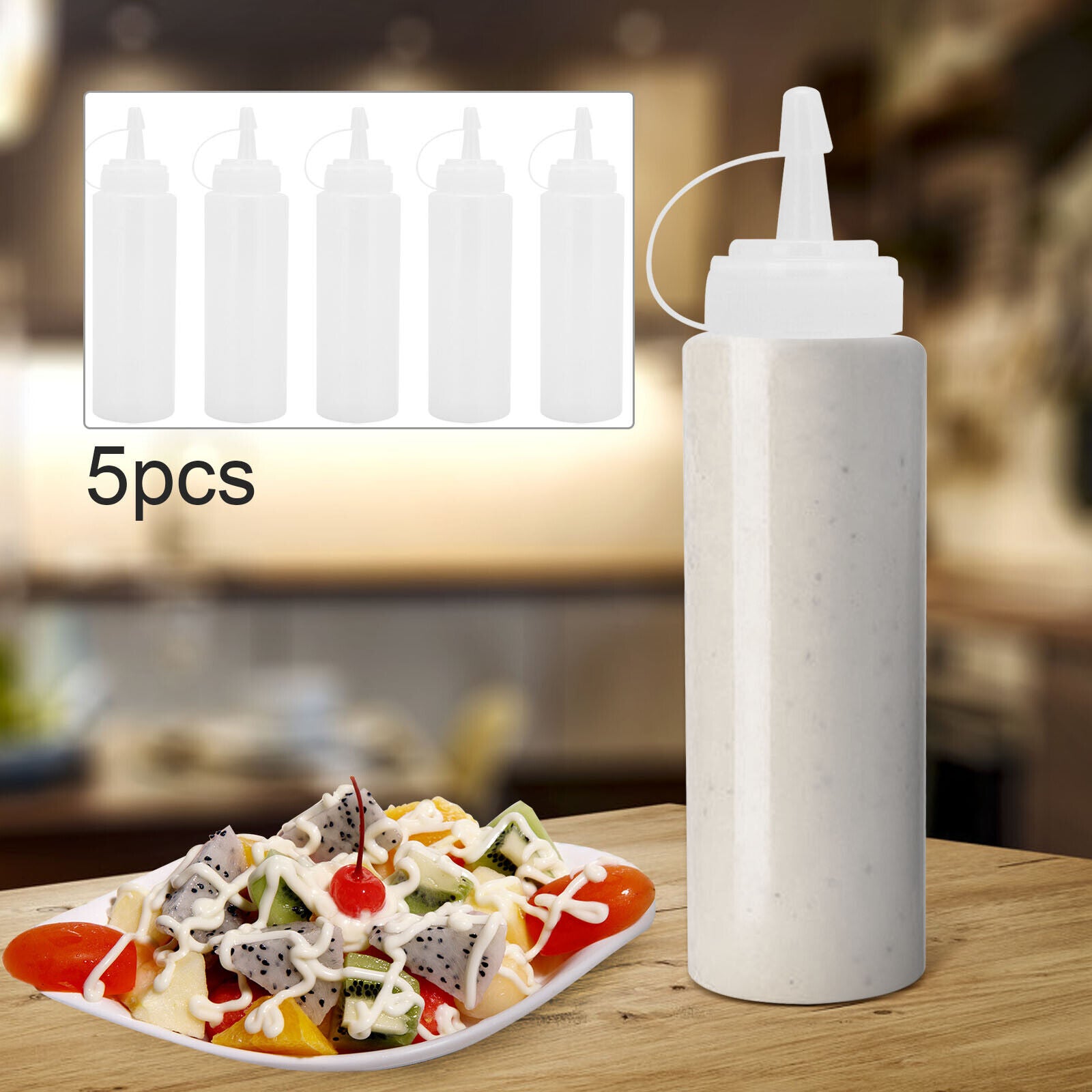 5pcs 230ml Clear Plastic Squeeze Bottle Condiment Dispenser Ketchup Salad 8oz