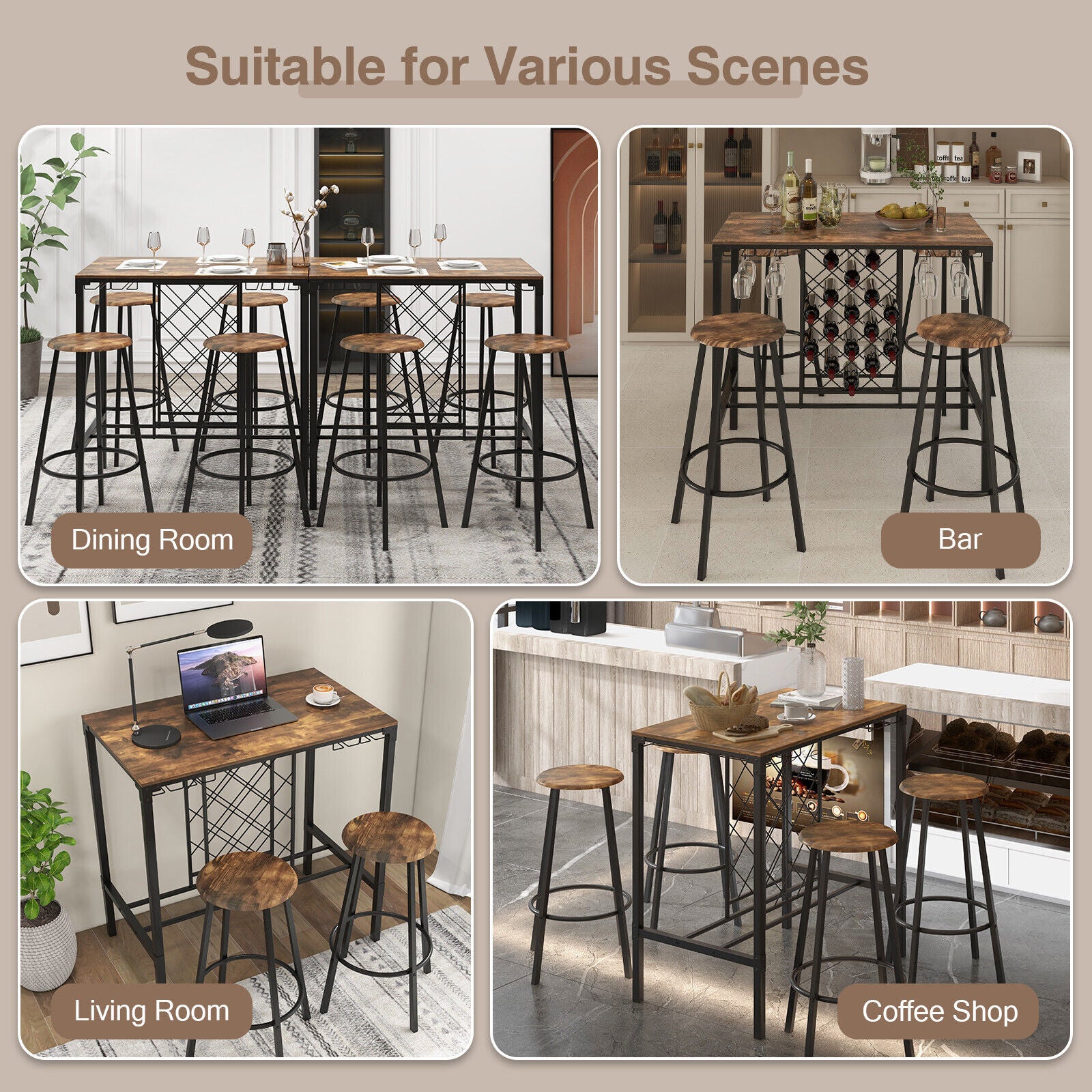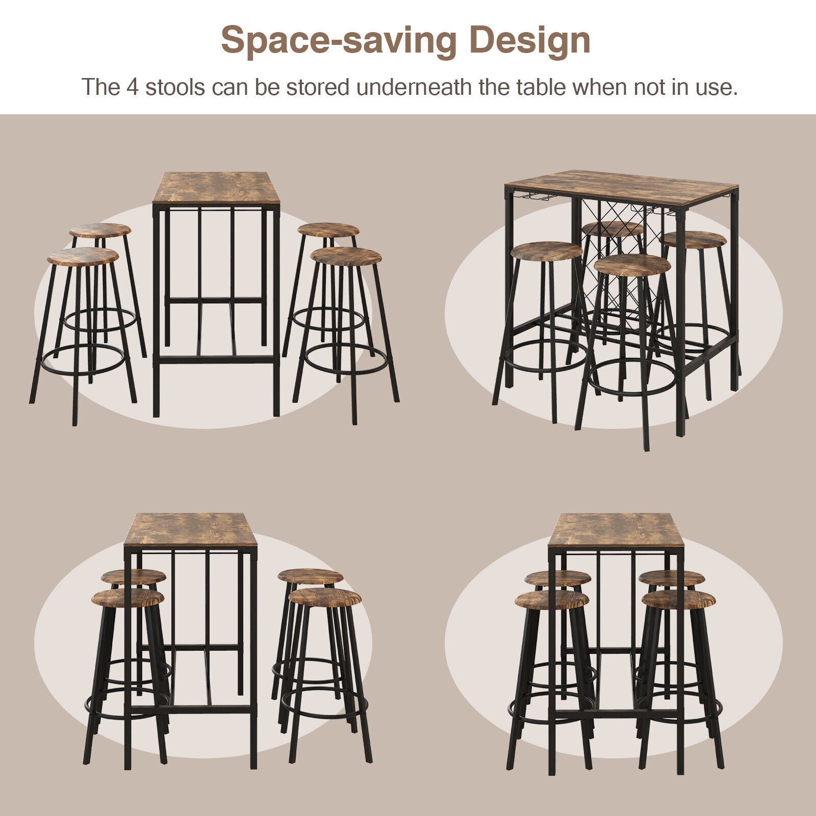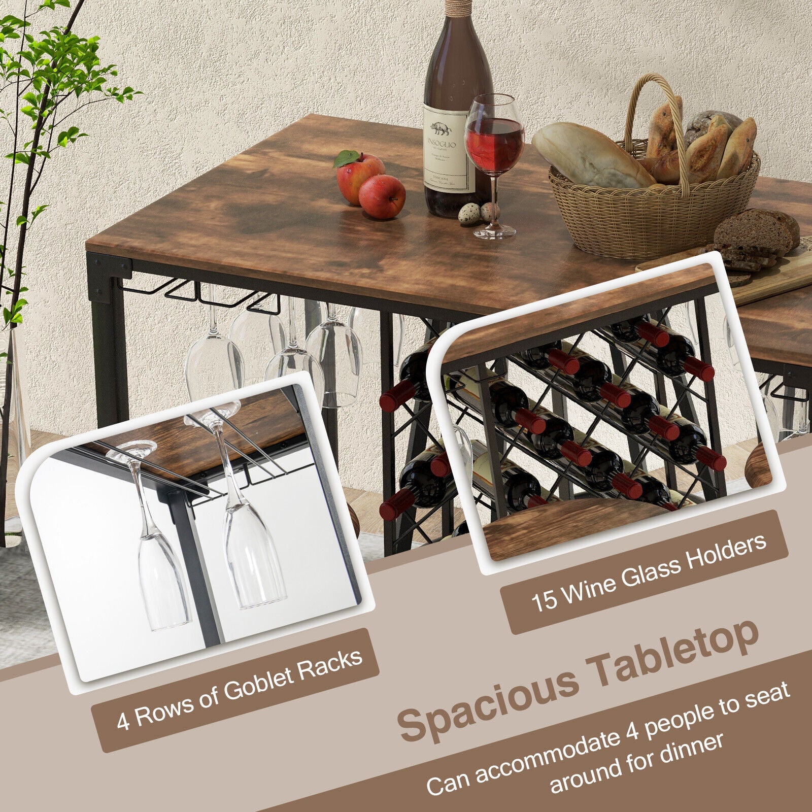 5Pcs Bar Height Kitchen Dining Set Bar Table Stool Set w/Wine Racks Glass Holder