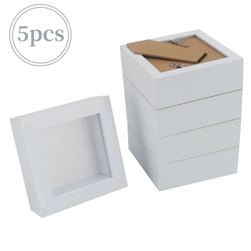 5PCS Box Picture Frame Deep 3D Photo Display 4x4 Inch Standing Hanging White