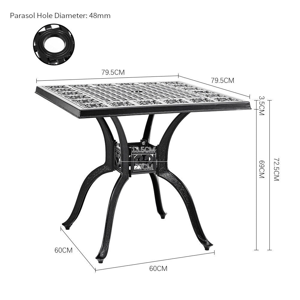 5Pcs Cast Aluminum Bistro Set Garden Furniture Dining Table Chairs with Cushions