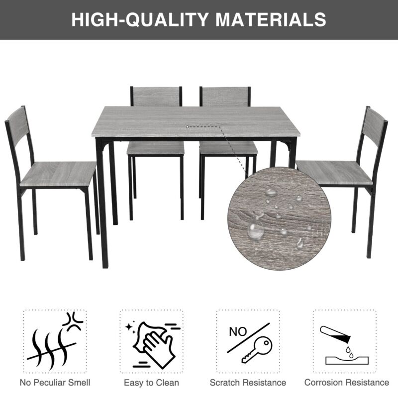 5PCS Dining Table and Chairs Set Modern Industrial Metal Frame Kitchen Home Bar