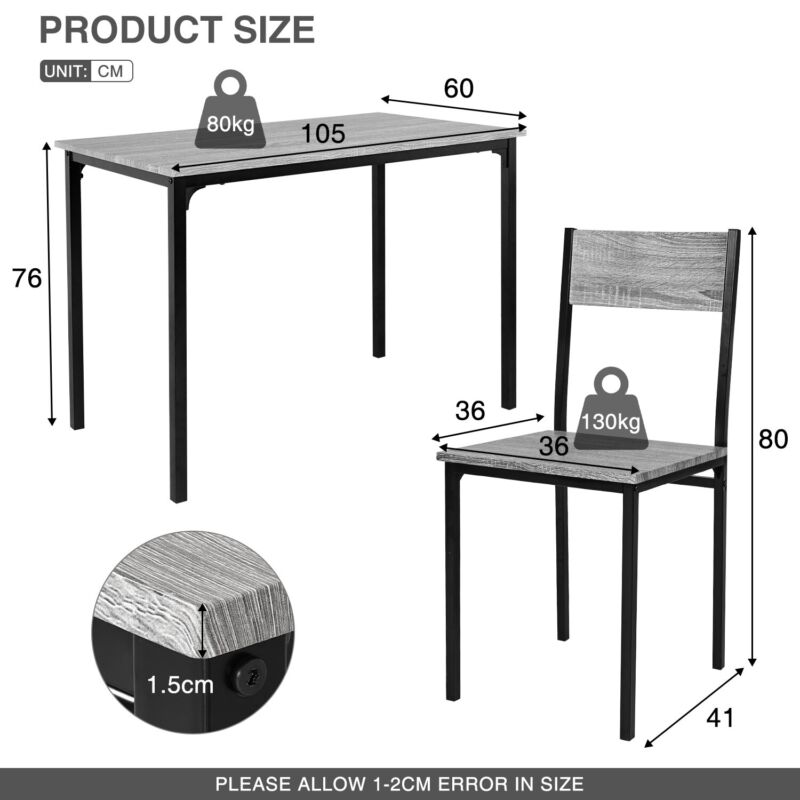 5PCS Dining Table and Chairs Set Modern Industrial Metal Frame Kitchen Home Bar