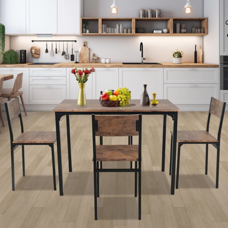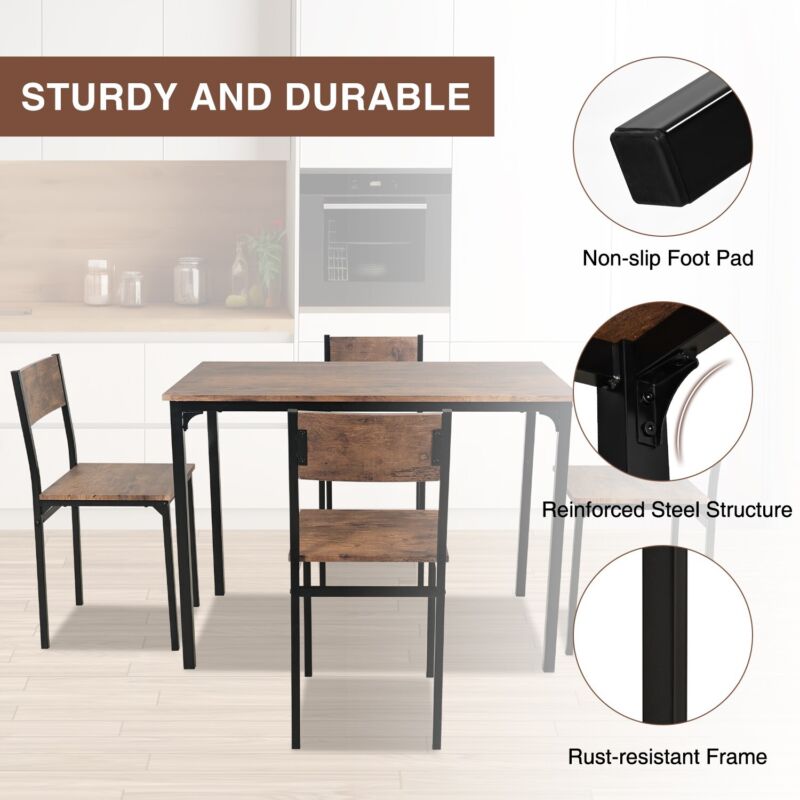 5PCS Dining Table and Chairs Set Modern Industrial Metal Frame Kitchen Home Bar