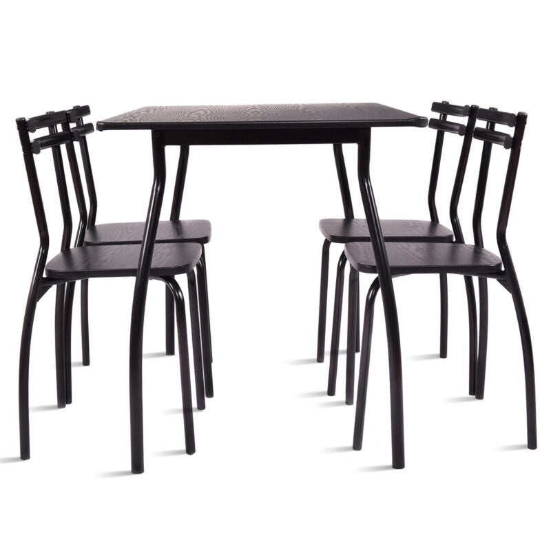 5PCS Dining Table & Chair Set Breakfast Bar Kitchen Furniture with Curved Back