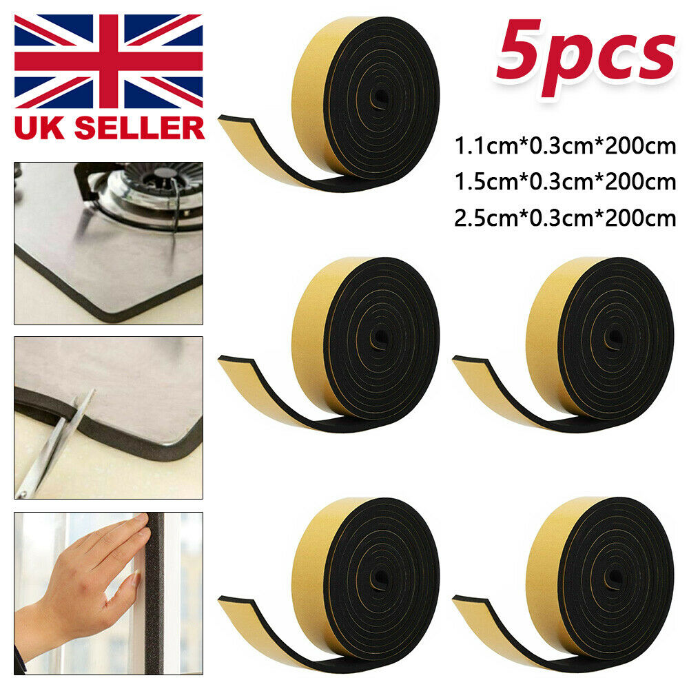 5pcs Extra Thick Rubber Foam Weather Strip Draught Excluder Seal 2M