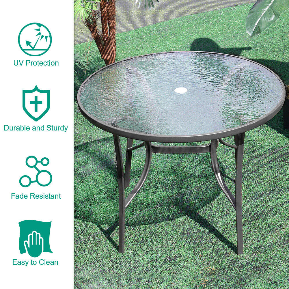 5Pcs Garden Round Dining Table & Chairs Set Metal Frame Outdoor Bistro Furniture