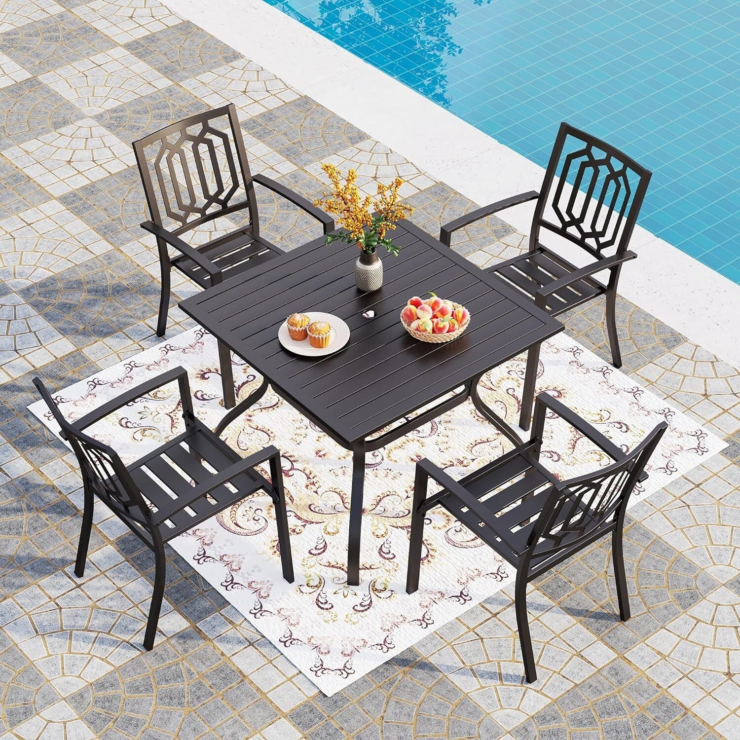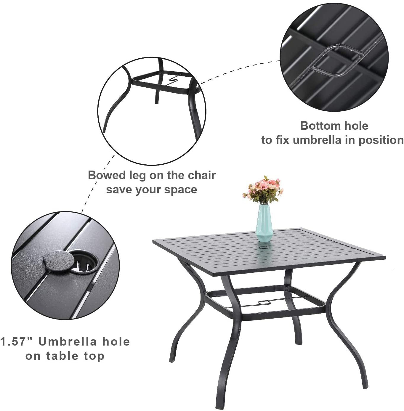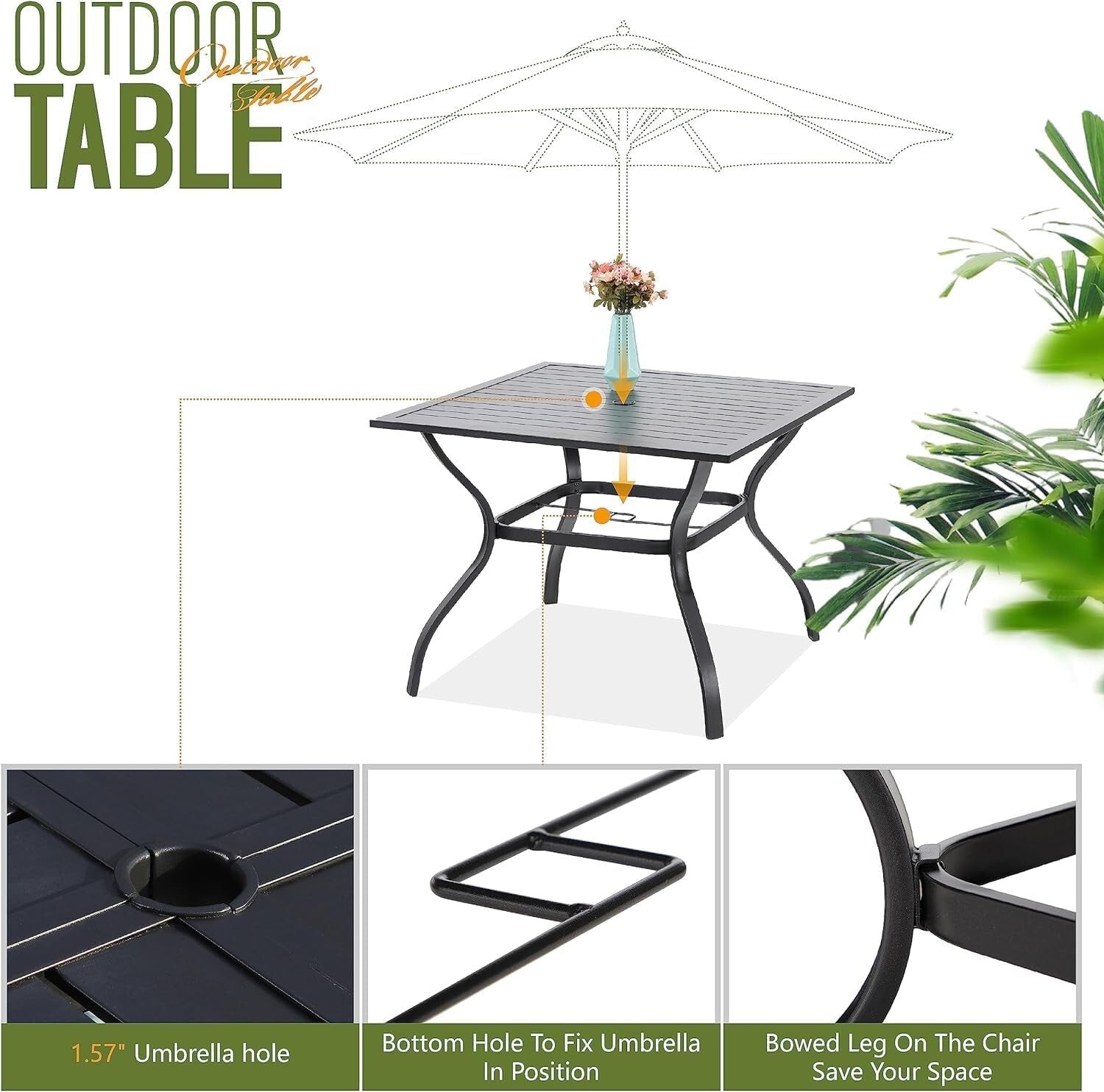 5Pcs Metal Patio Outdoor Dining Table Dining Set Patio Table Sets Umbrella Hole