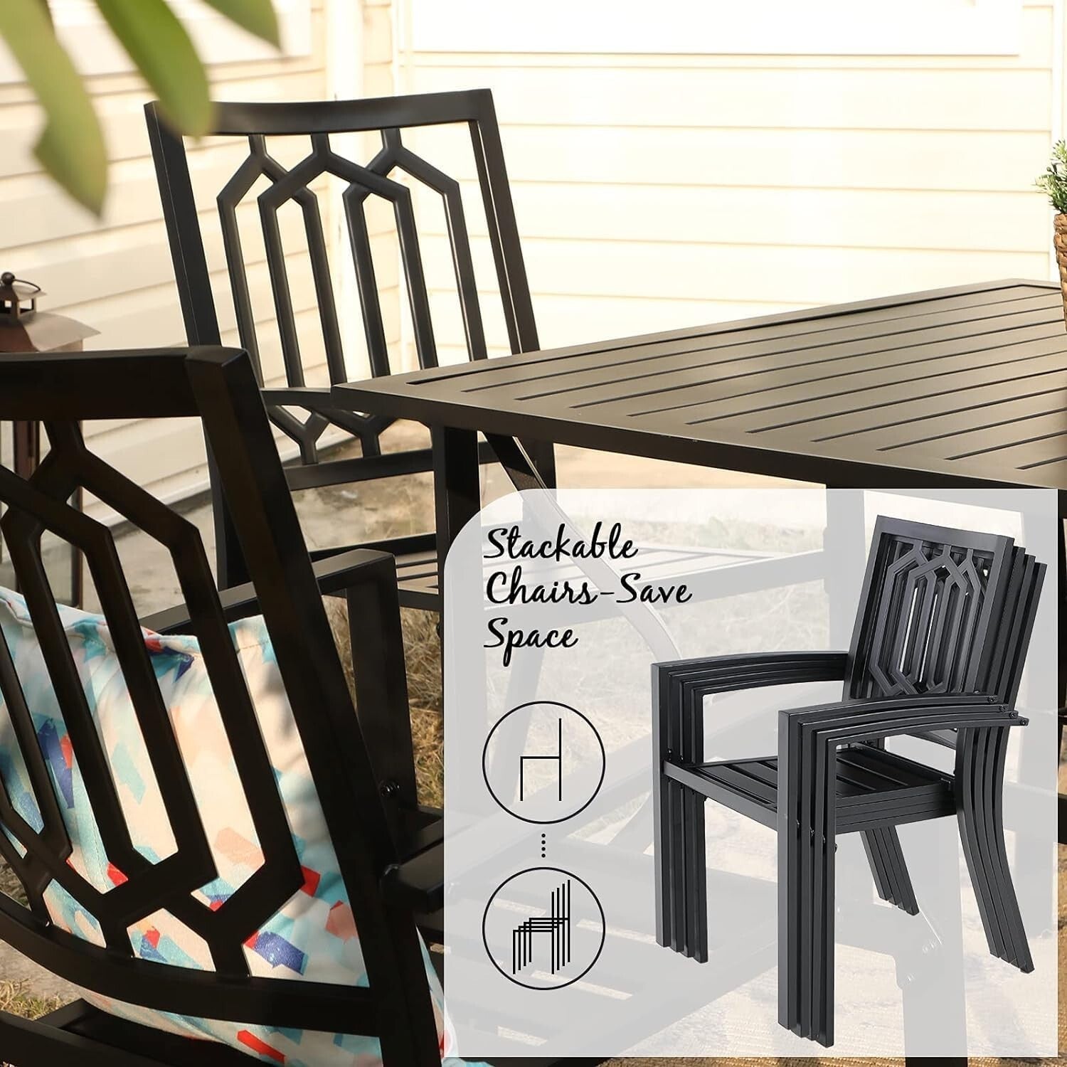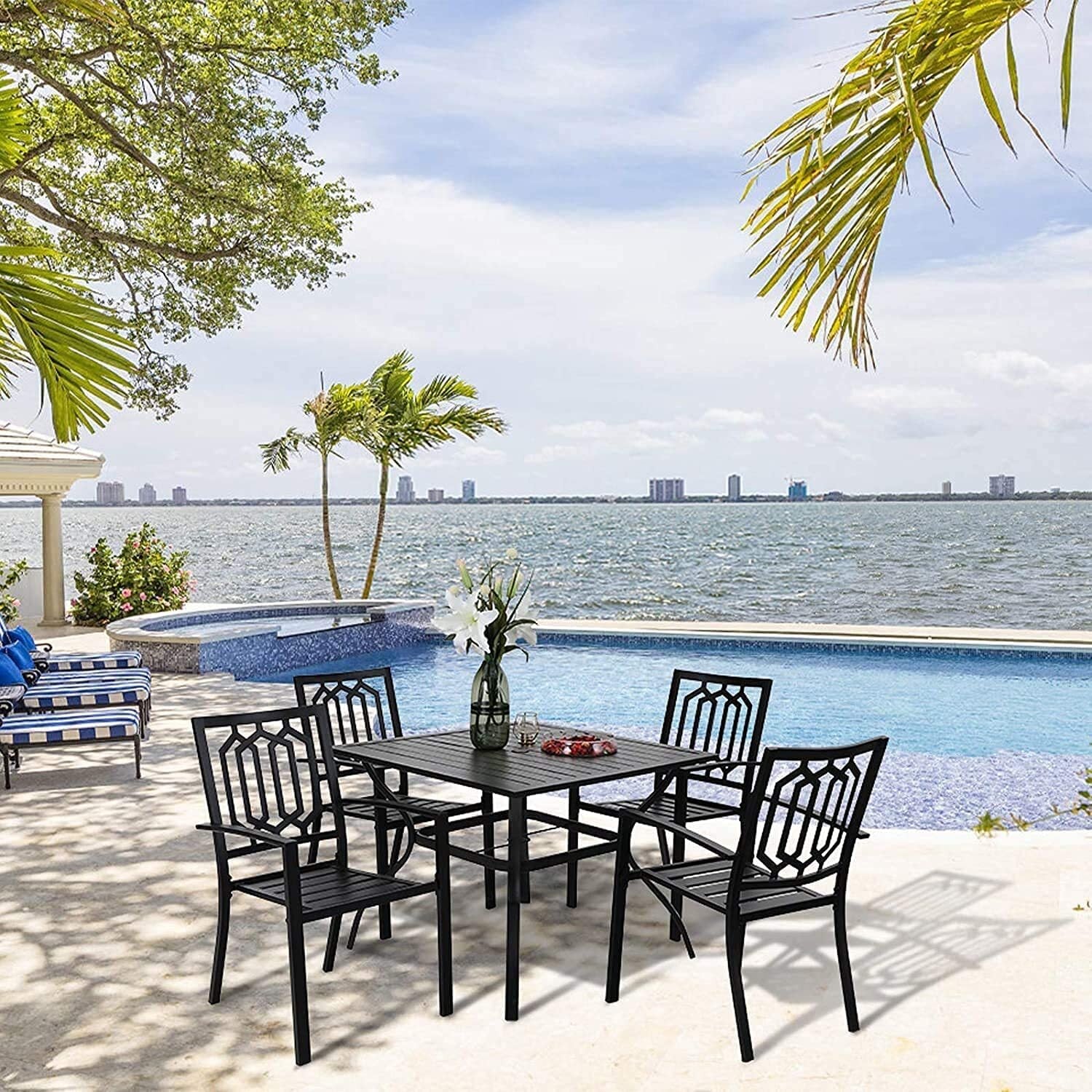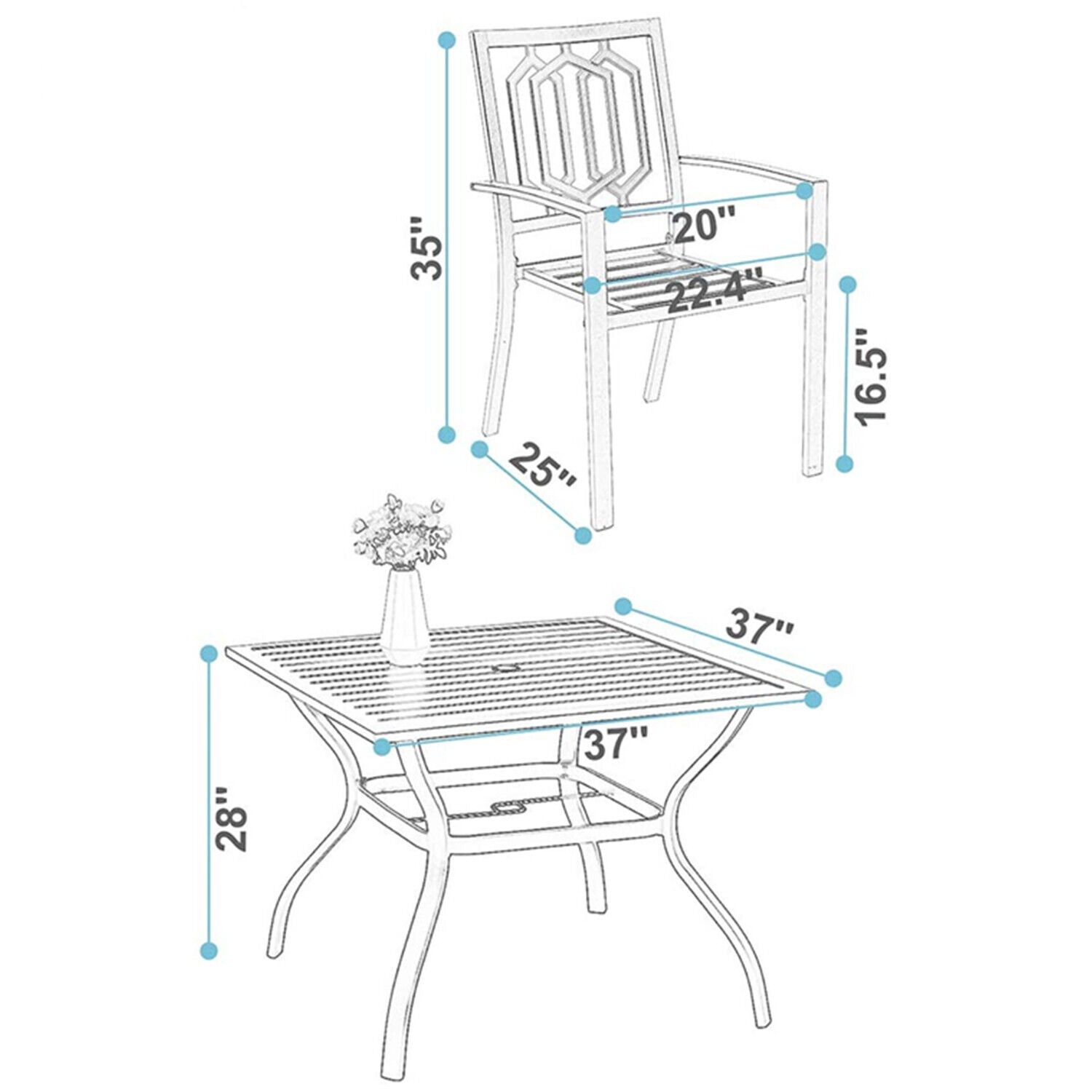 5Pcs Metal Patio Outdoor Dining Table Dining Set Patio Table Sets Umbrella Hole