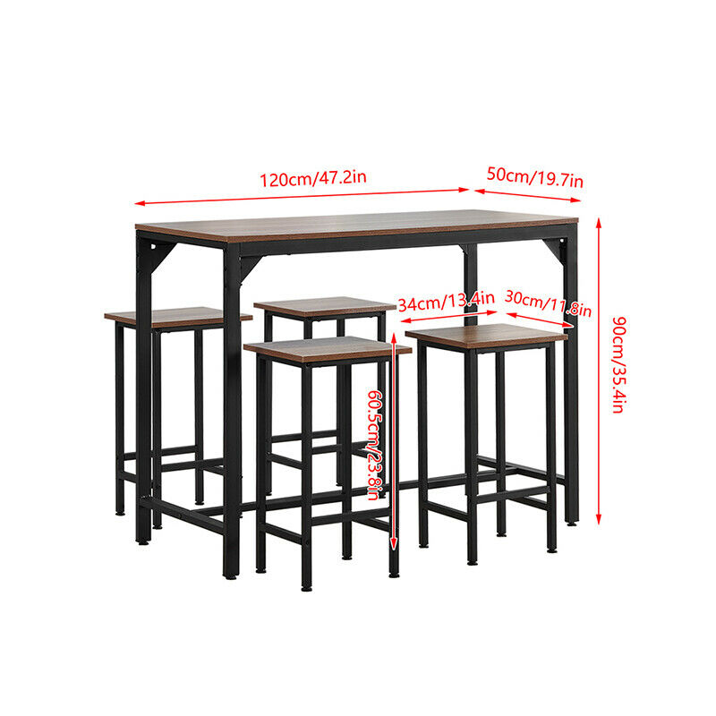 5Pcs Modern Bar Table & 4 Stools Breakfast Kitchen Dining Set Bar Bistro Wood BN