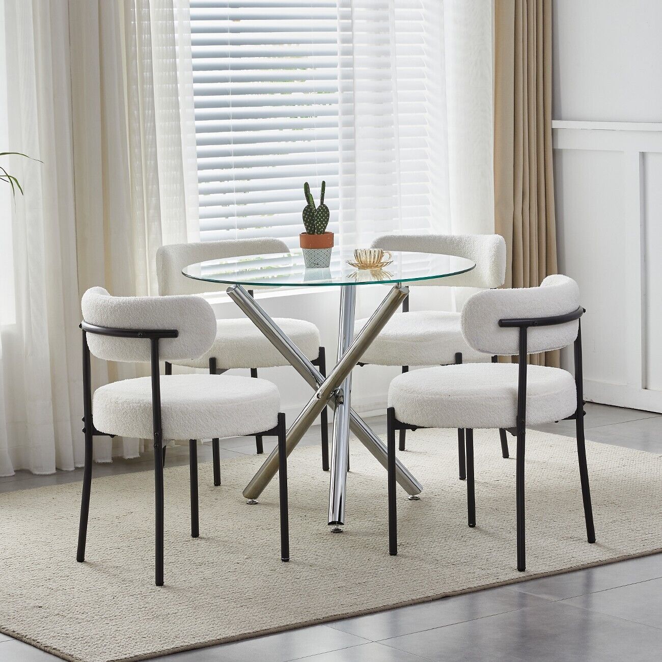5Pcs Modern Dining Table Set 4 Chairs Glass Table with 4 Boucle Kitchen Chairs