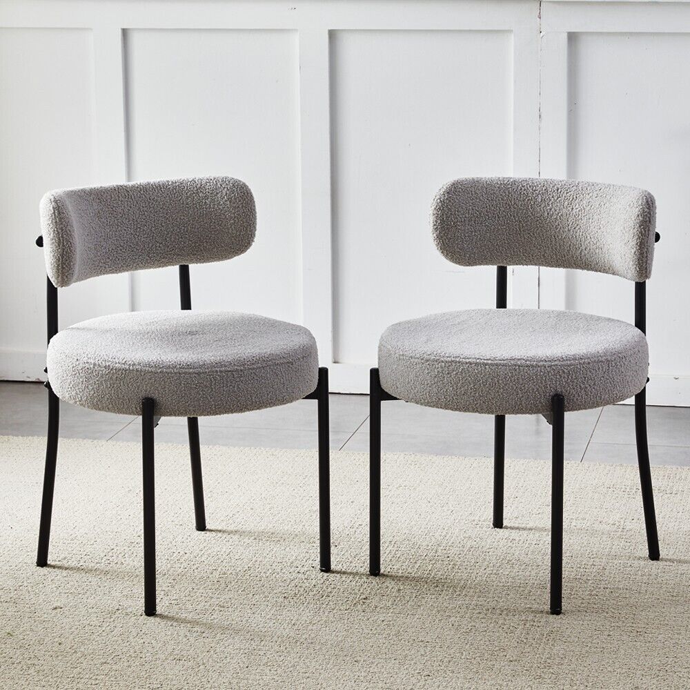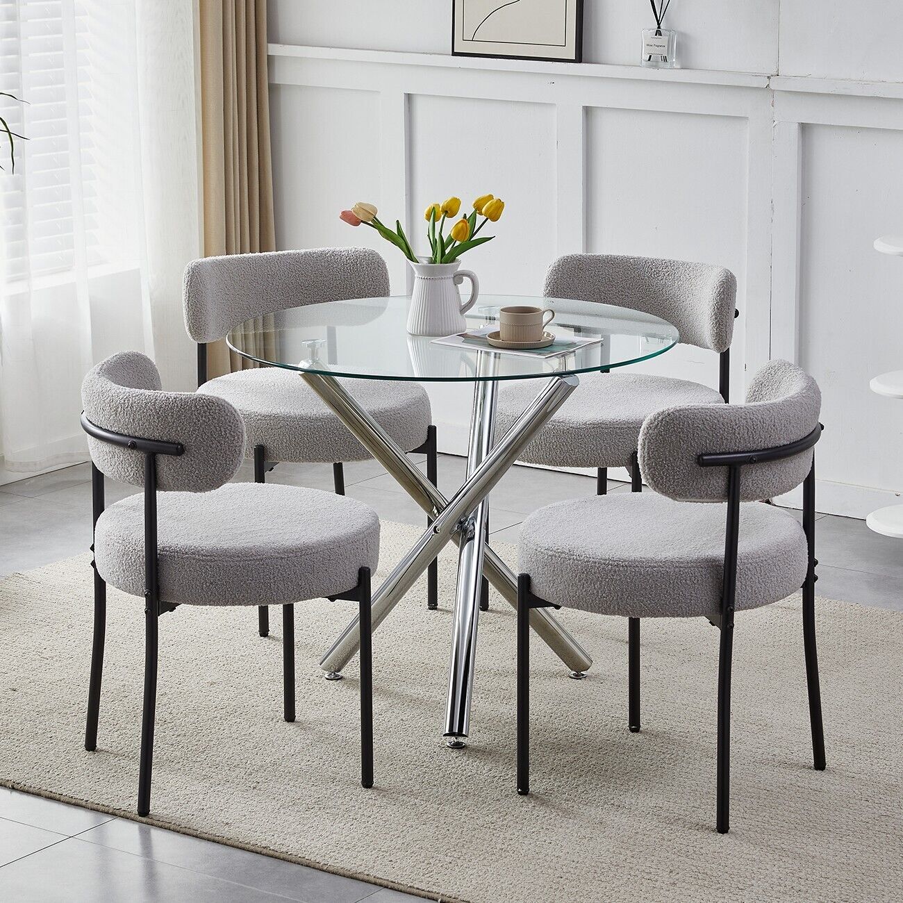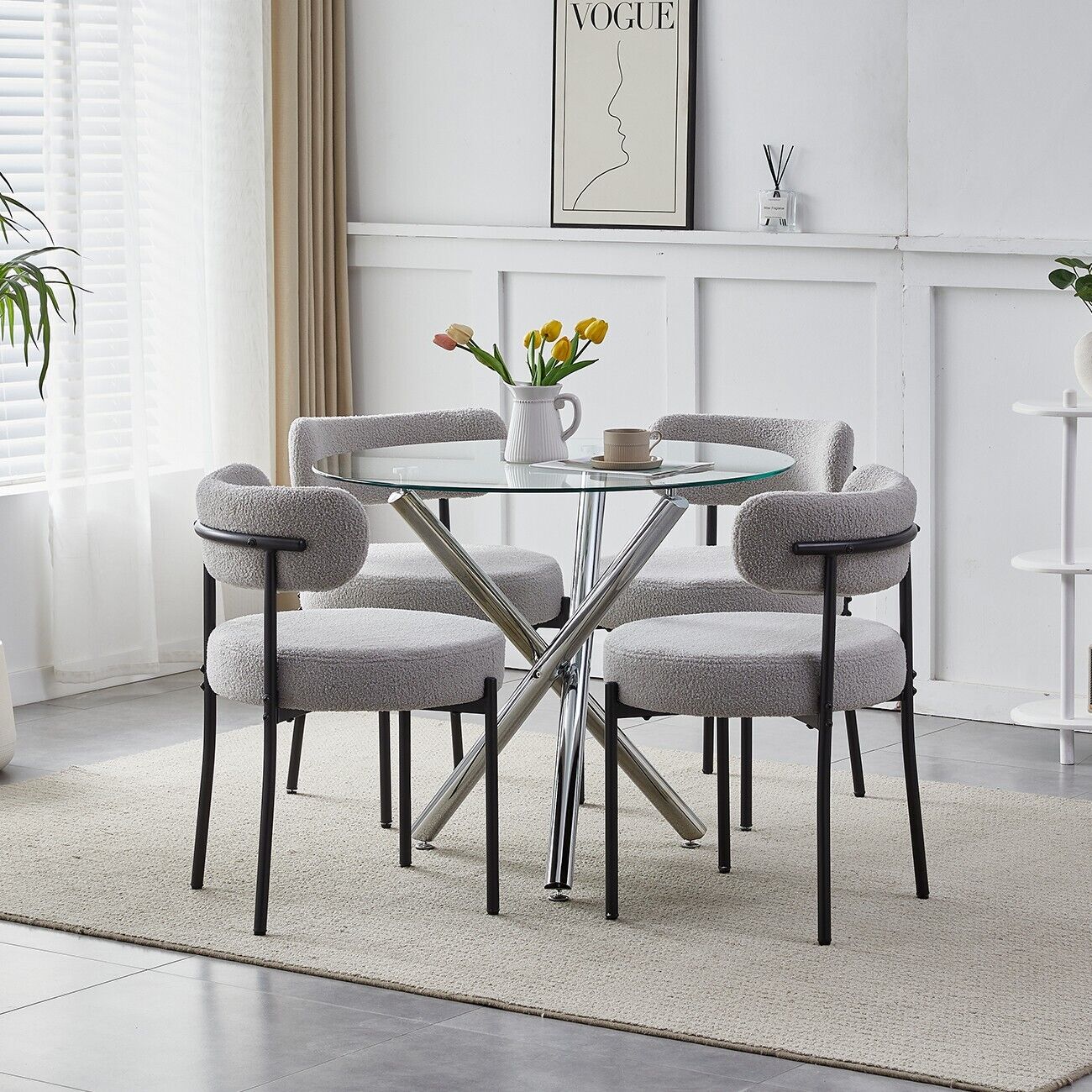 5Pcs Modern Dining Table Set 4 Chairs Glass Table with 4 Boucle Kitchen Chairs