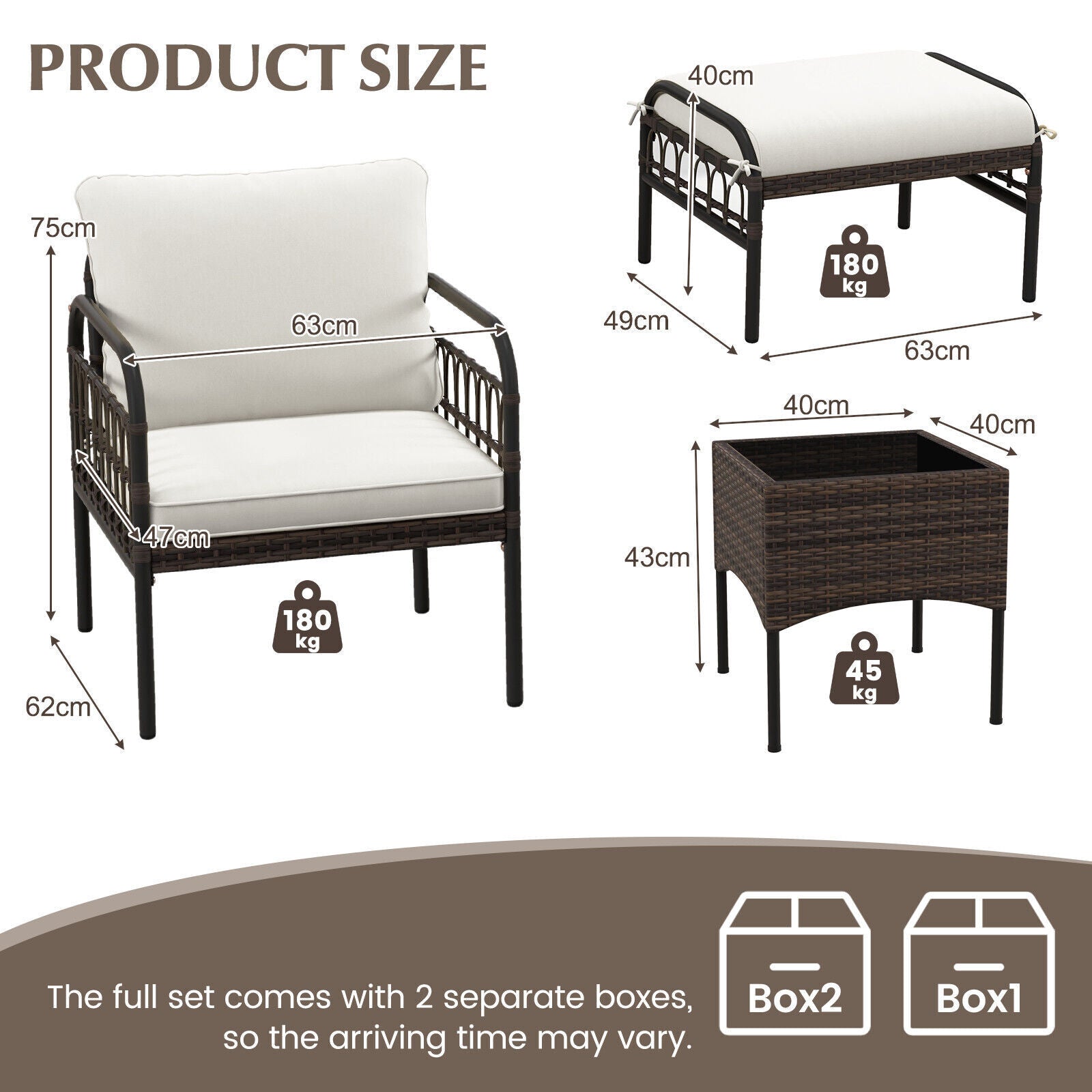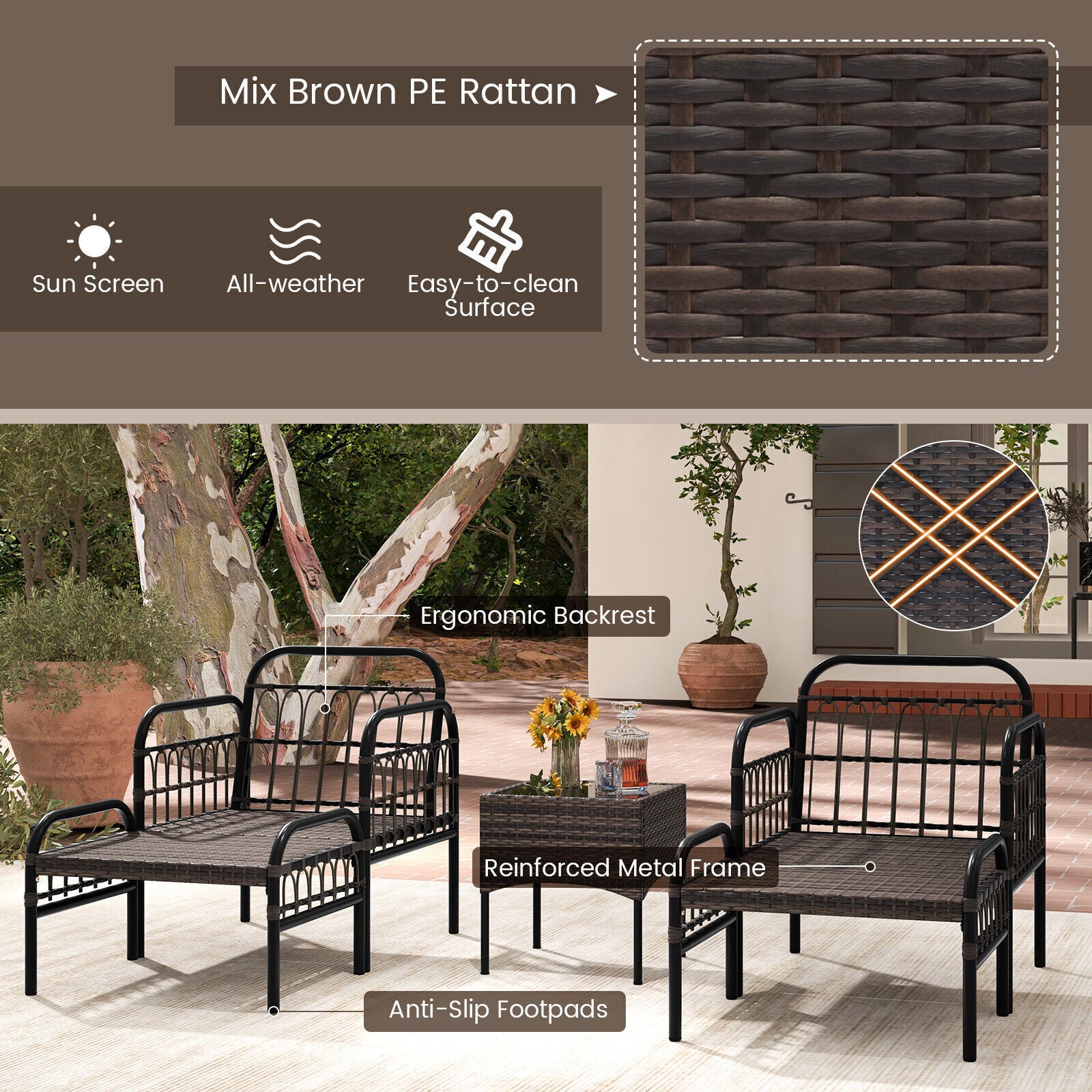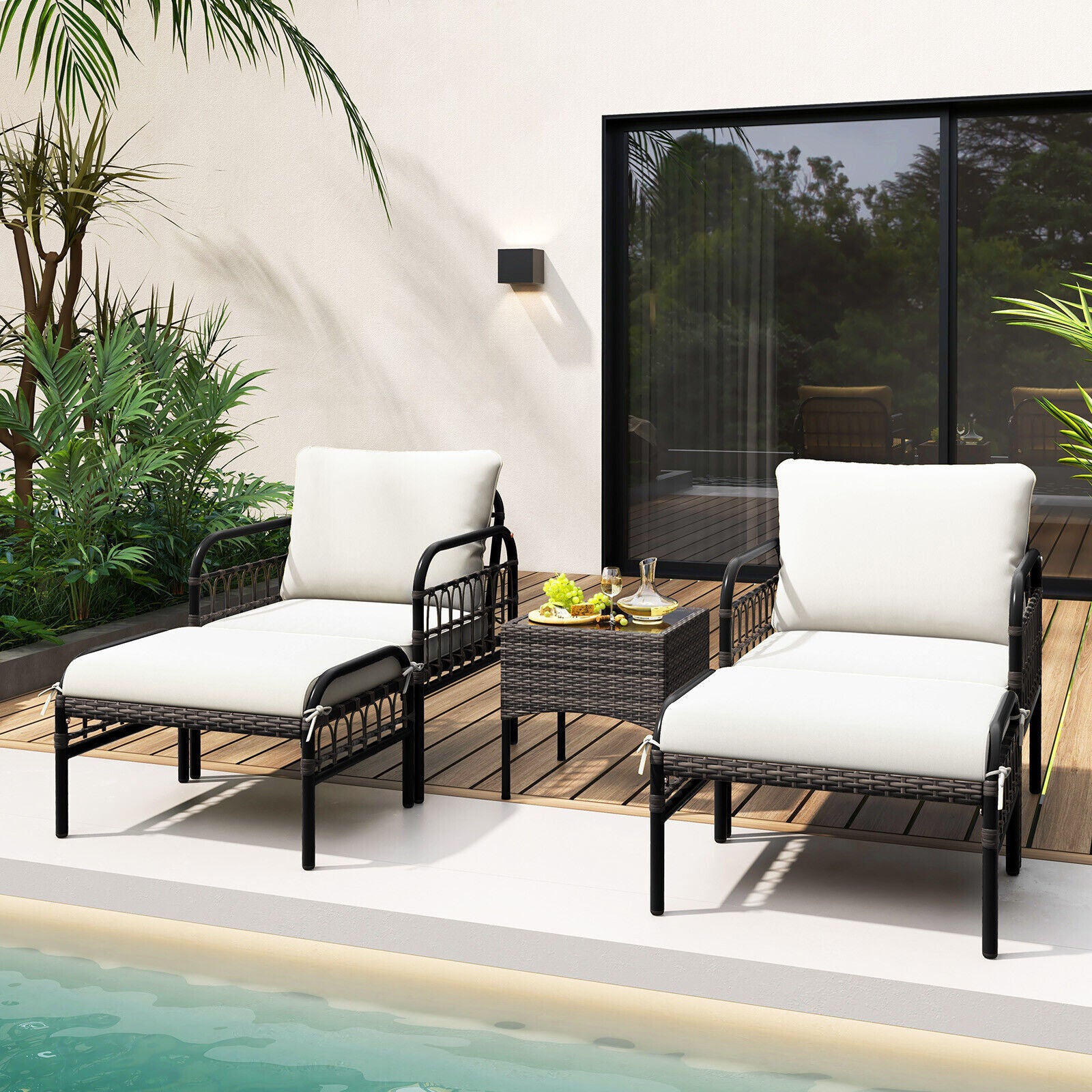 5Pcs Outdoor Wicker Woven Chair Set Garden Furniture Set with Table & Ottomans