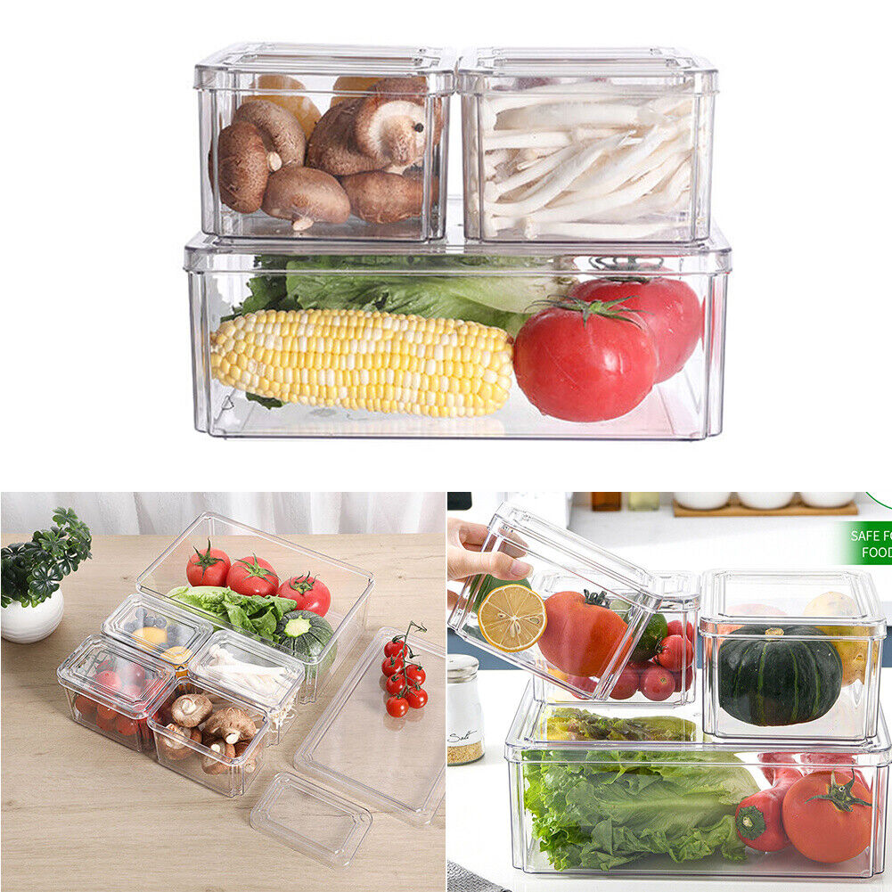 5PCS/PACK Fridge Storage Box with Lid Handle Clear Food Container Plastic Boxes