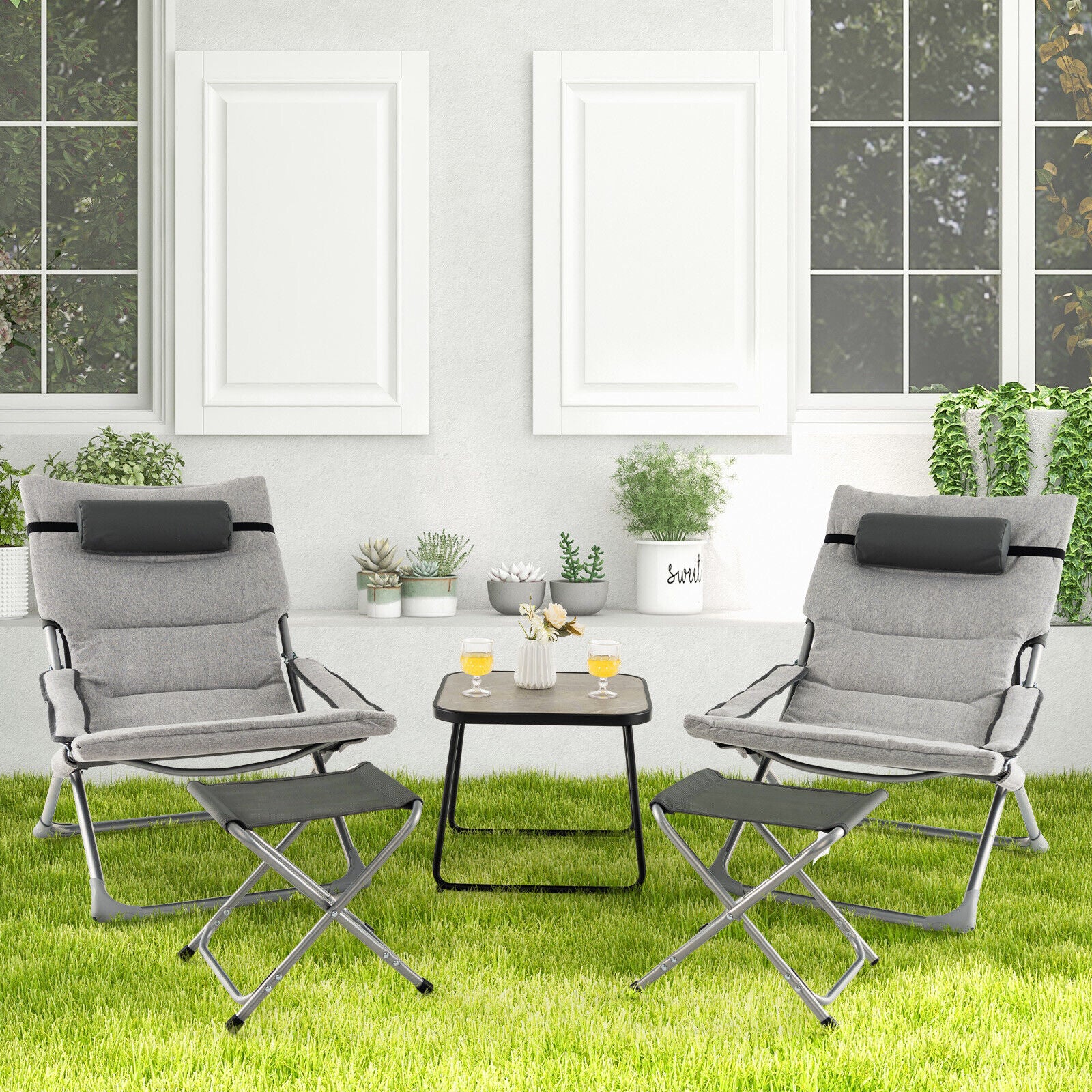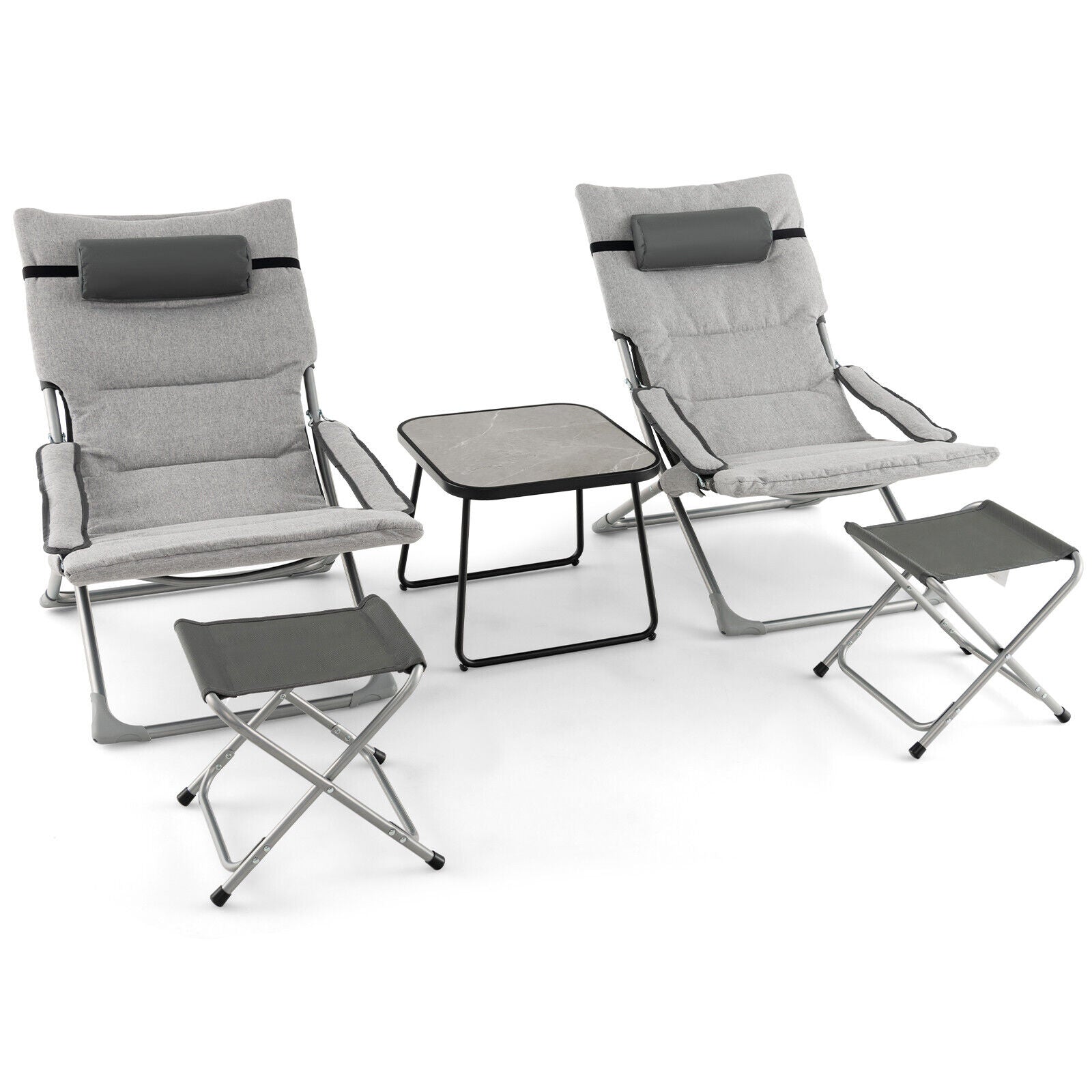 5Pcs Patio Sling Chair Set Folding Lounge Chairs Coffee Table Chair Footrest Set
