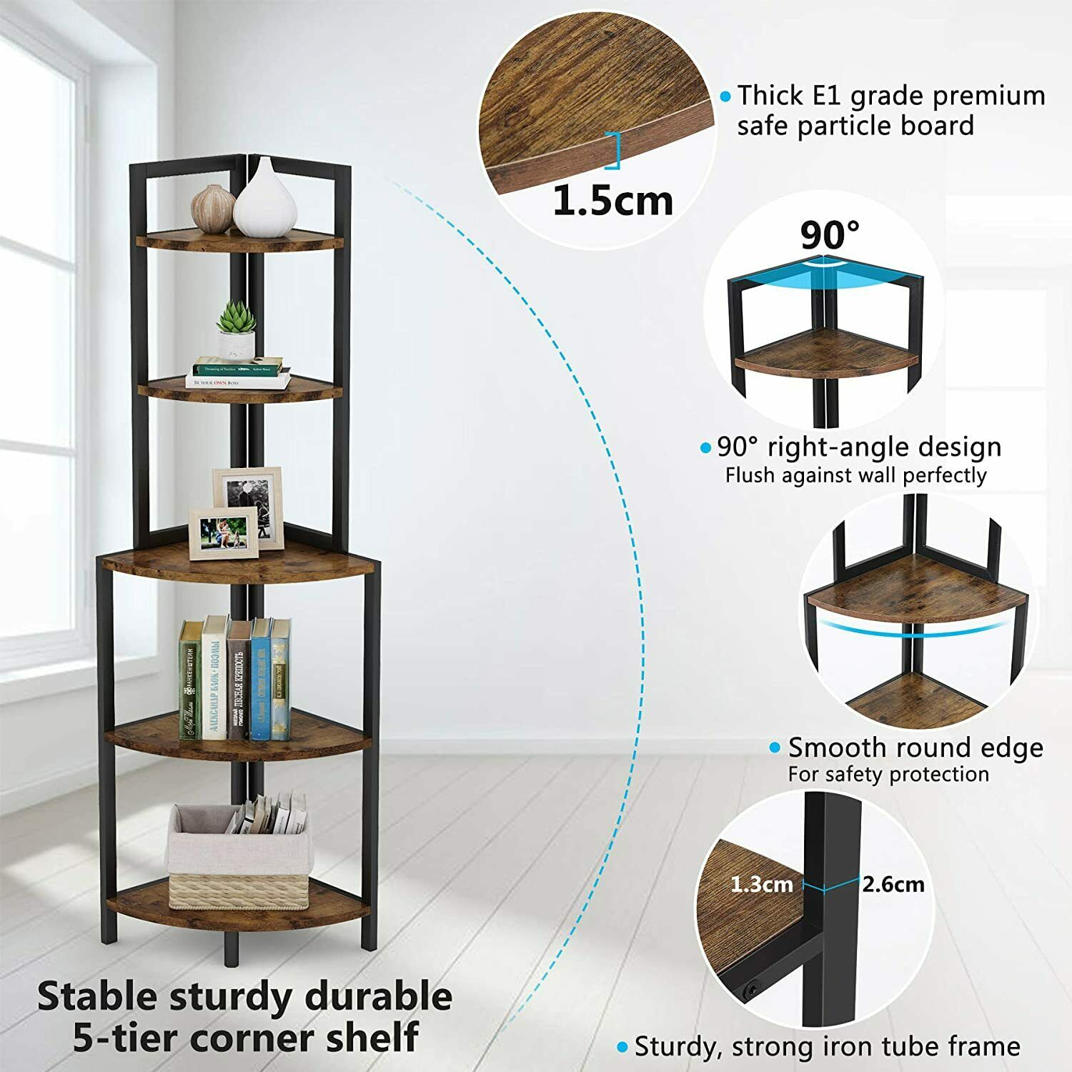 5tier Corner Shelf Ladder Shelf Bookshelf Display Storage Stand Rack Home Office
