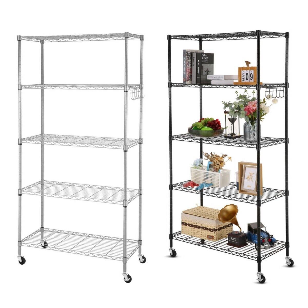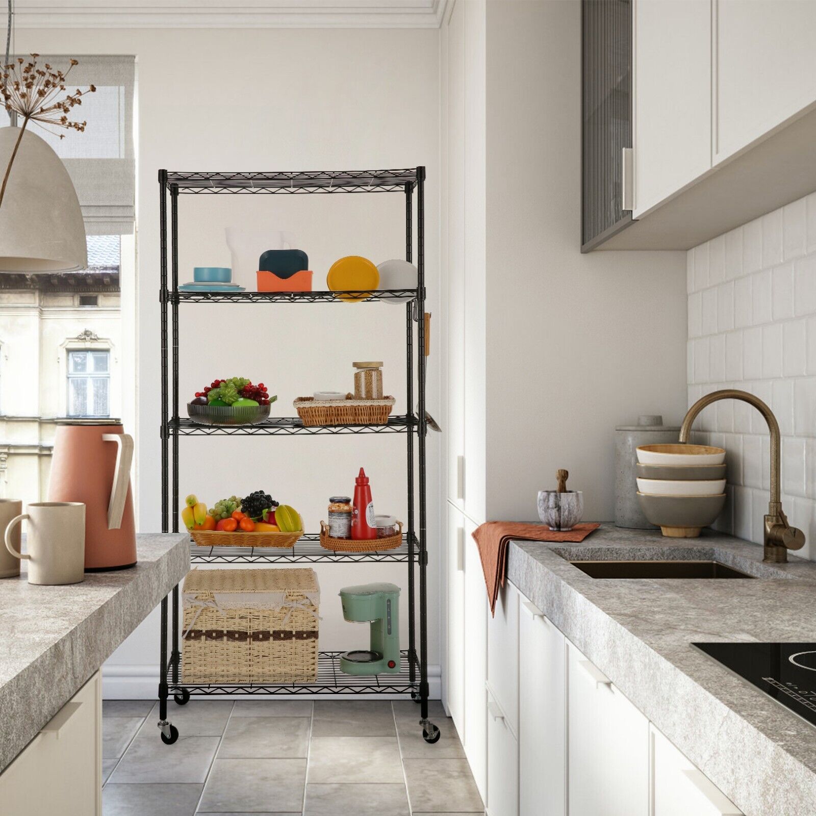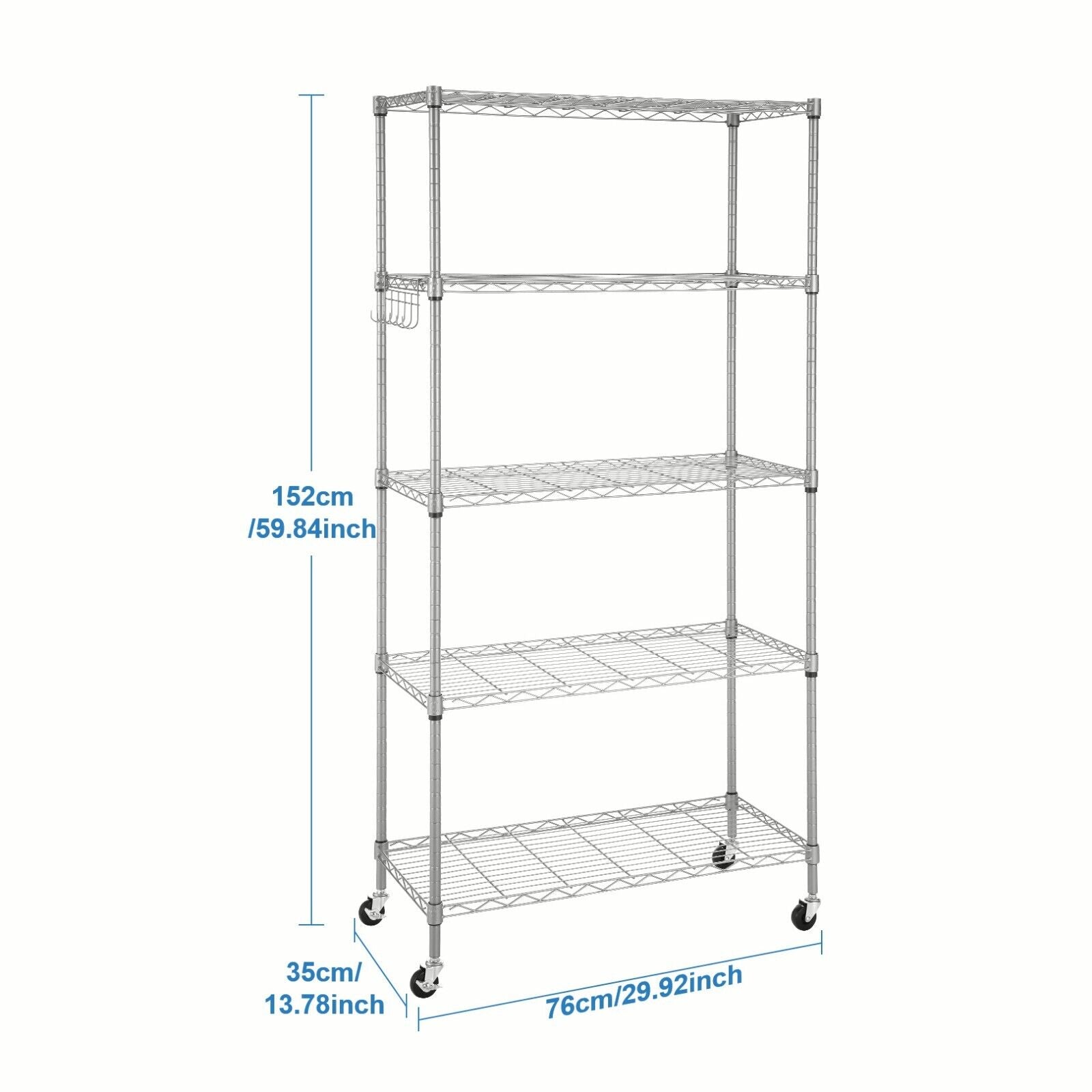 5Tier Metal Storage Rack on Wheels Shelving Wire Shelf Kitchen Office Stand Unit
