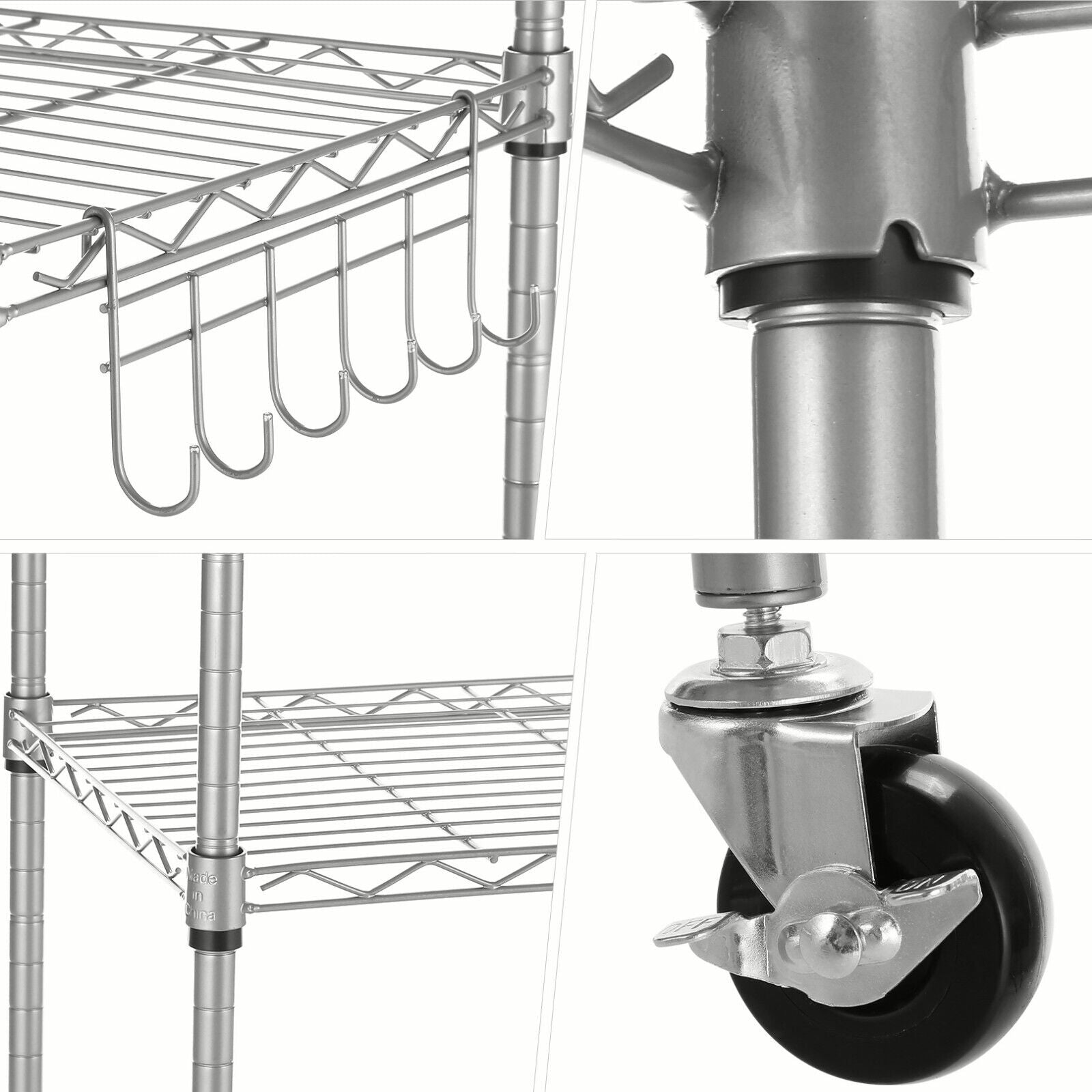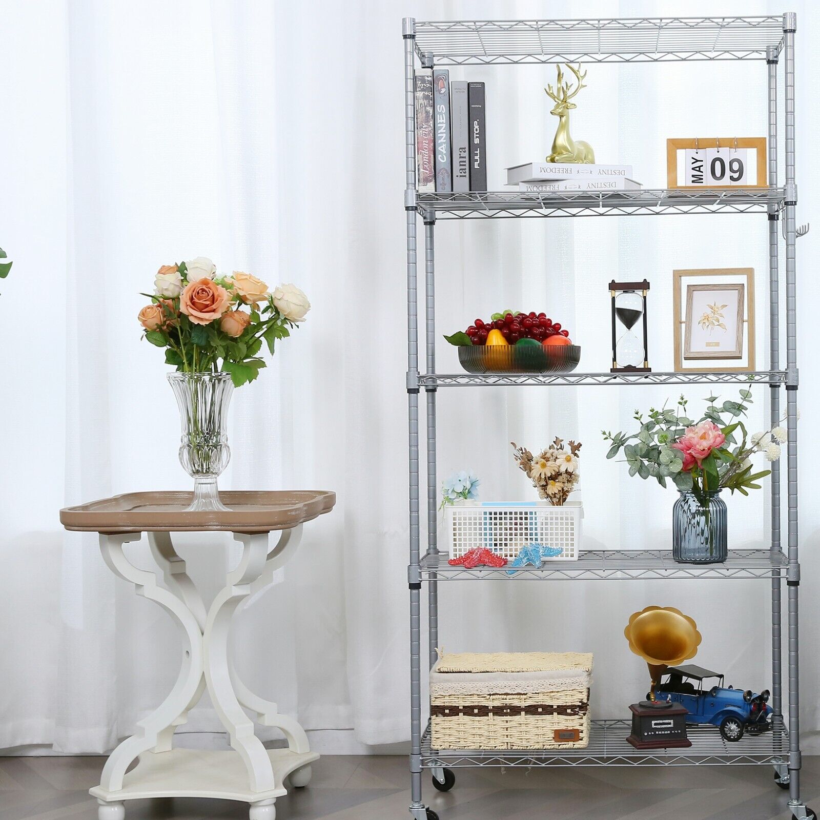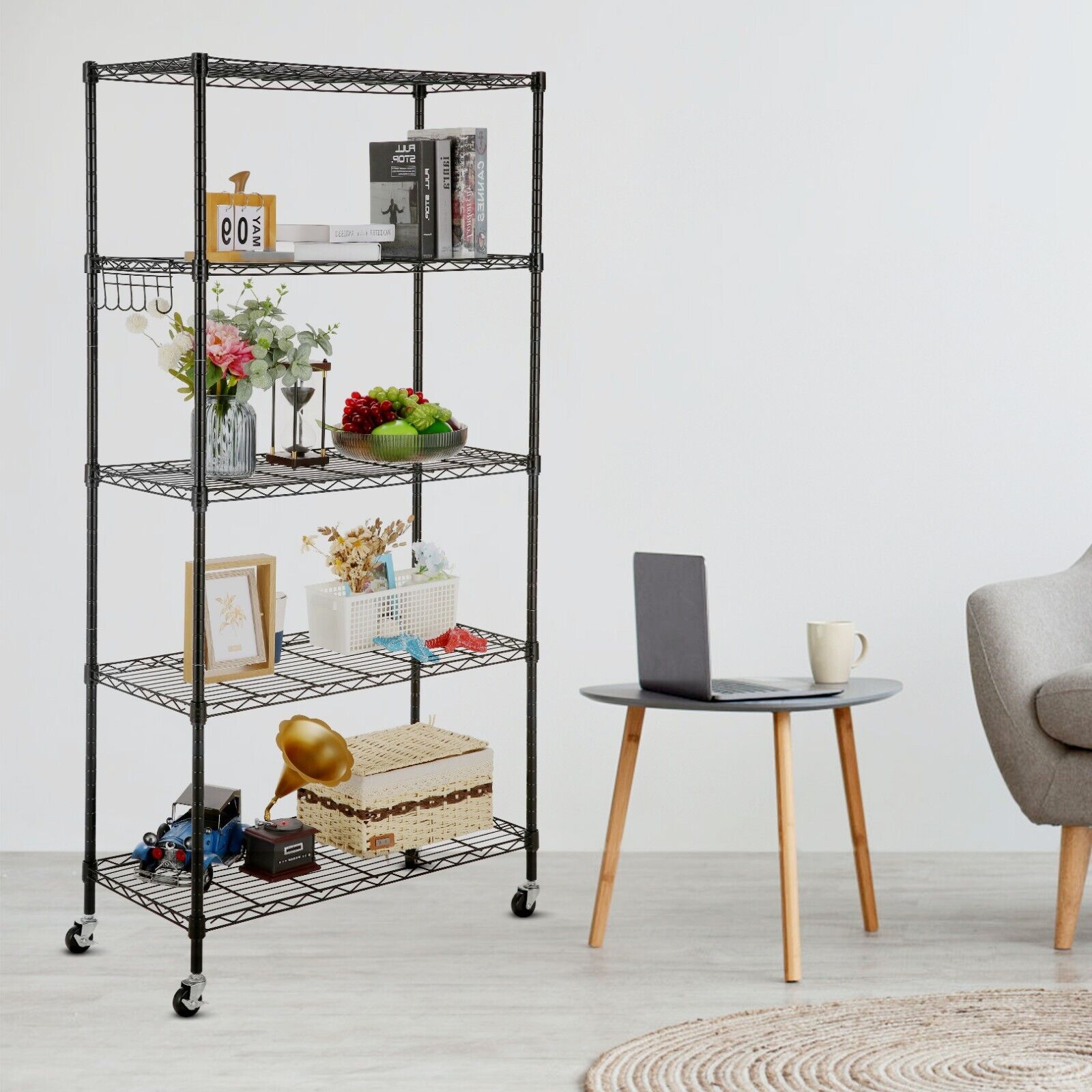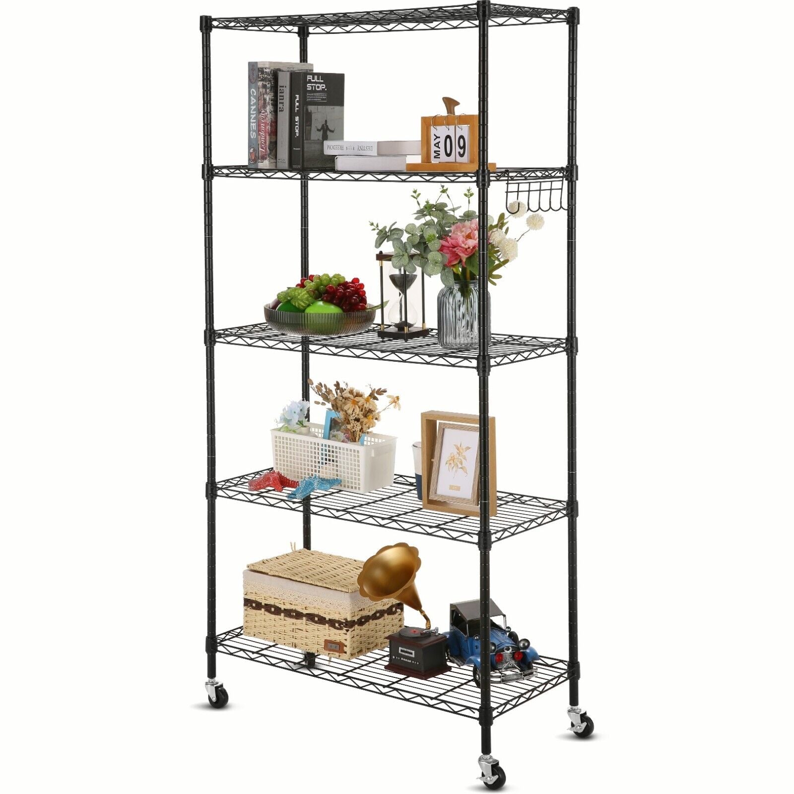 5Tier Metal Storage Rack on Wheels Shelving Wire Shelf Kitchen Office Stand Unit
