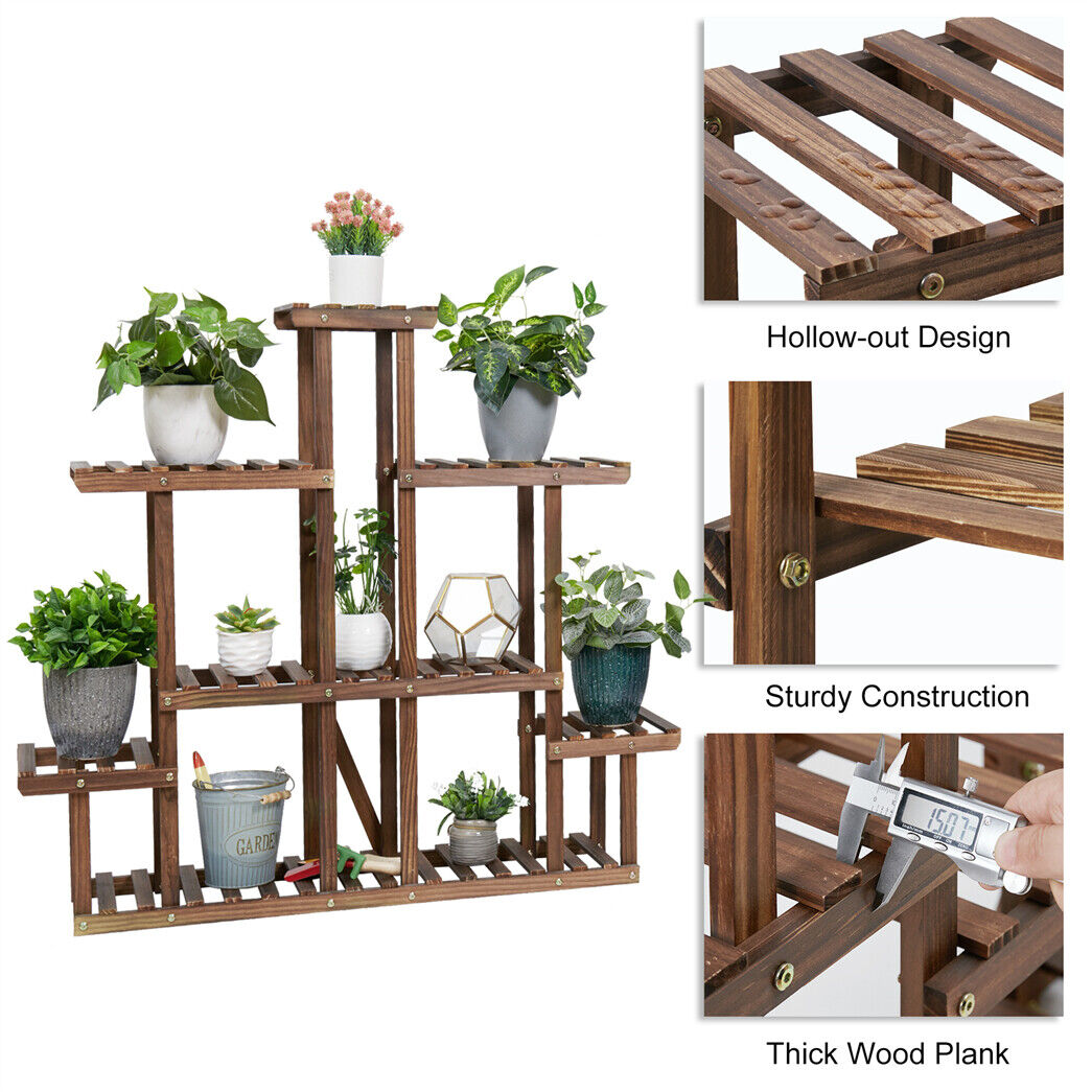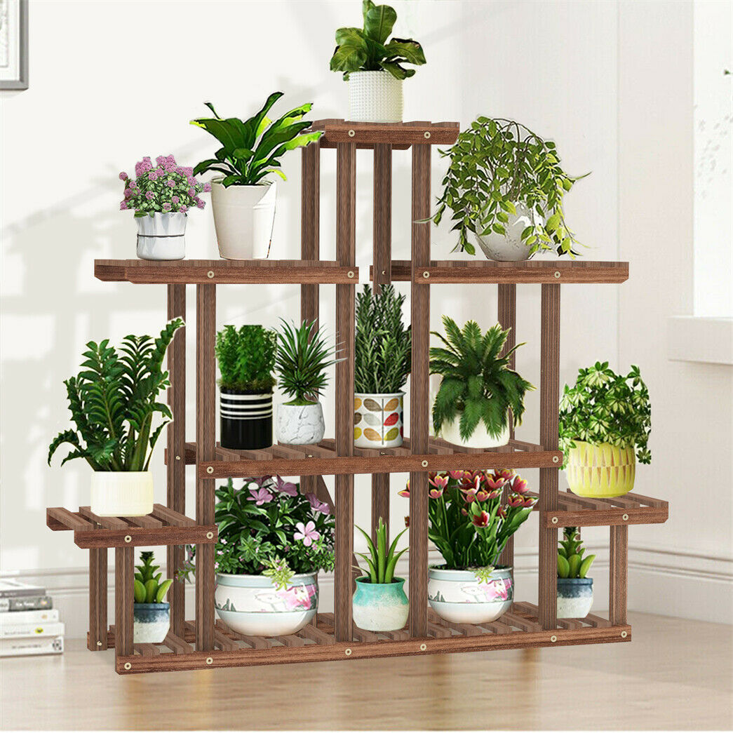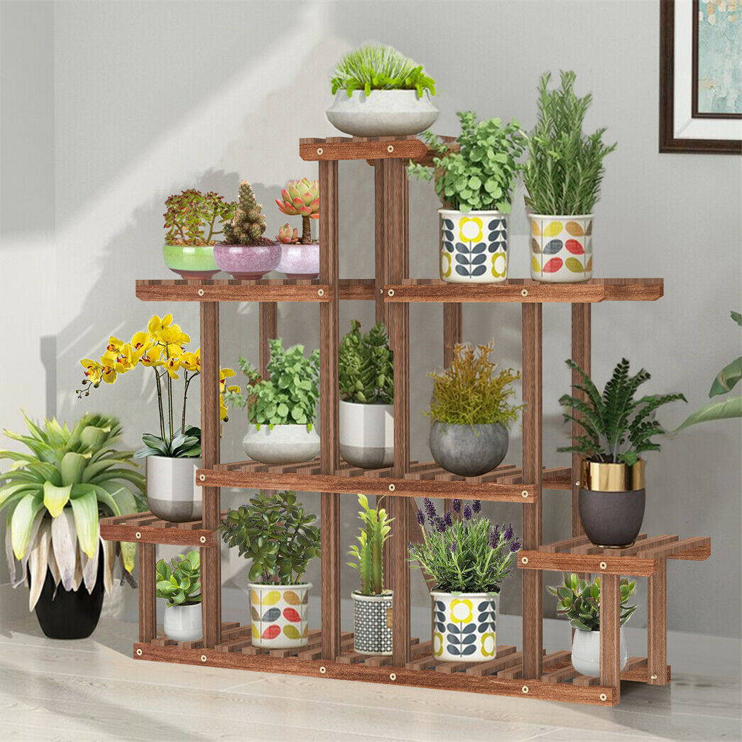 5Tier Symmetry Large Wooden Plant Stand Garden Flowerpot Shelf Display Rack 96cm