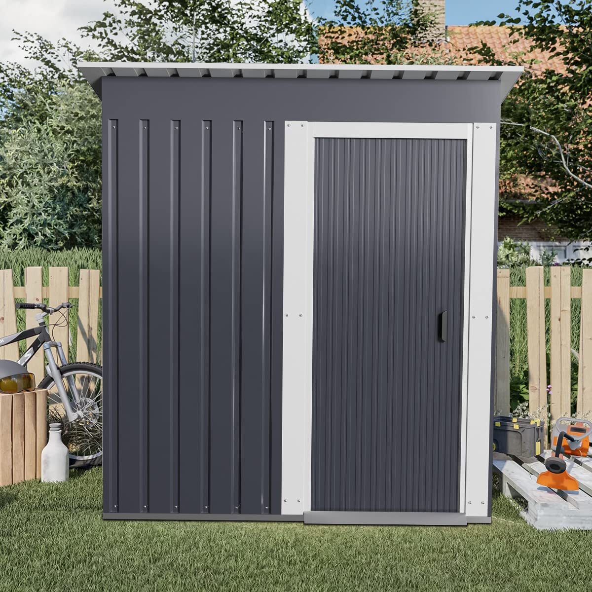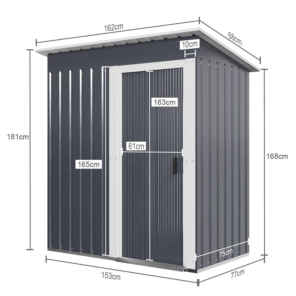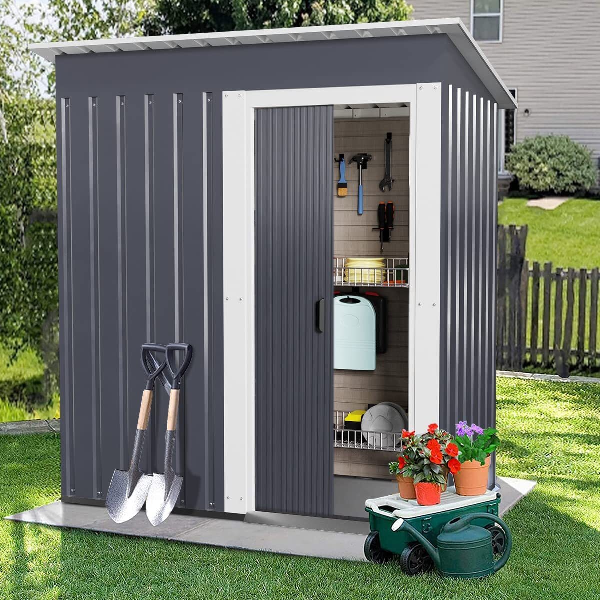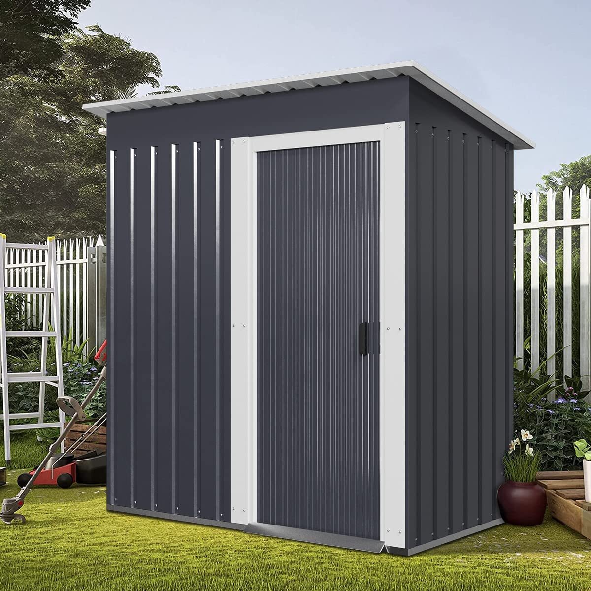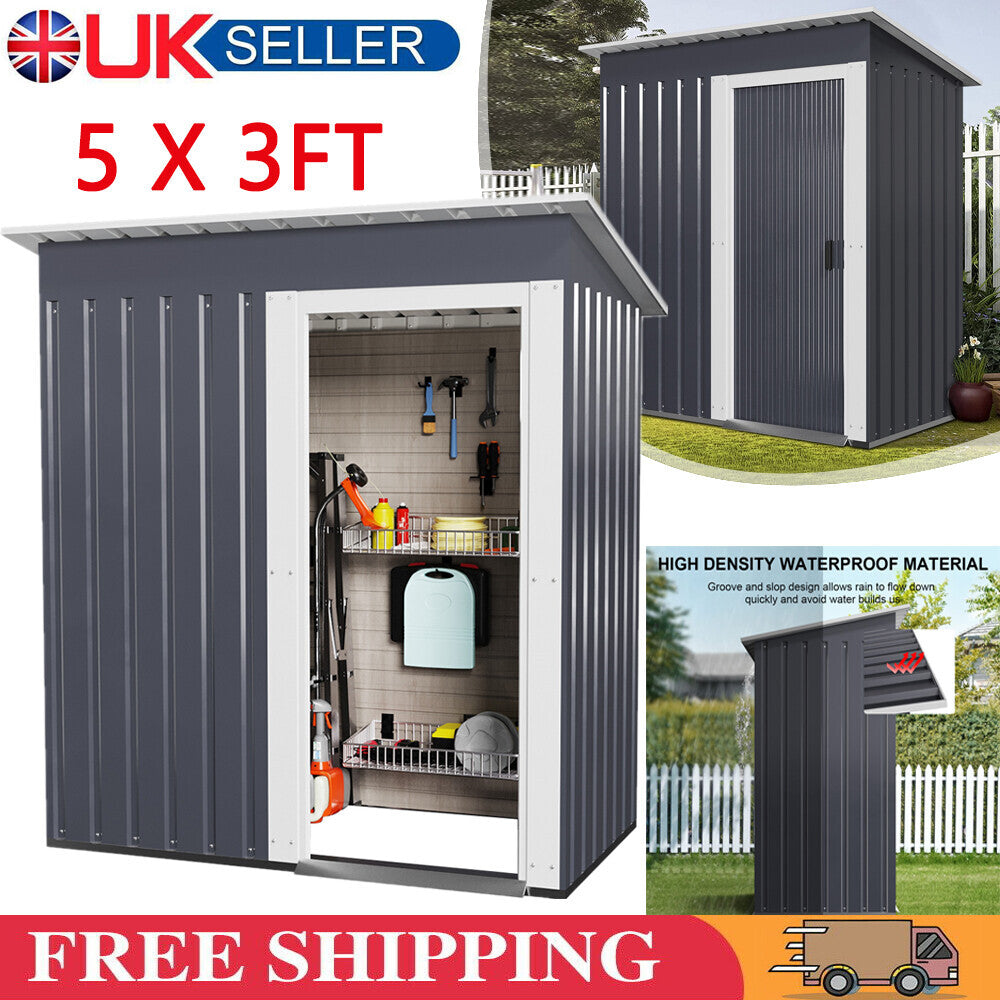 5x3FT Large Metal Outdoor Storage Shed Steel Garden Shed with Lockable Door Grey