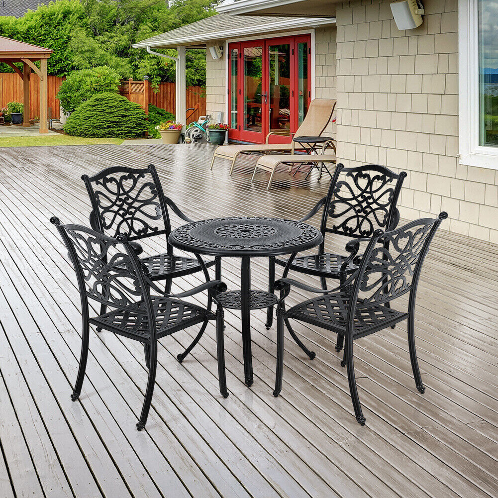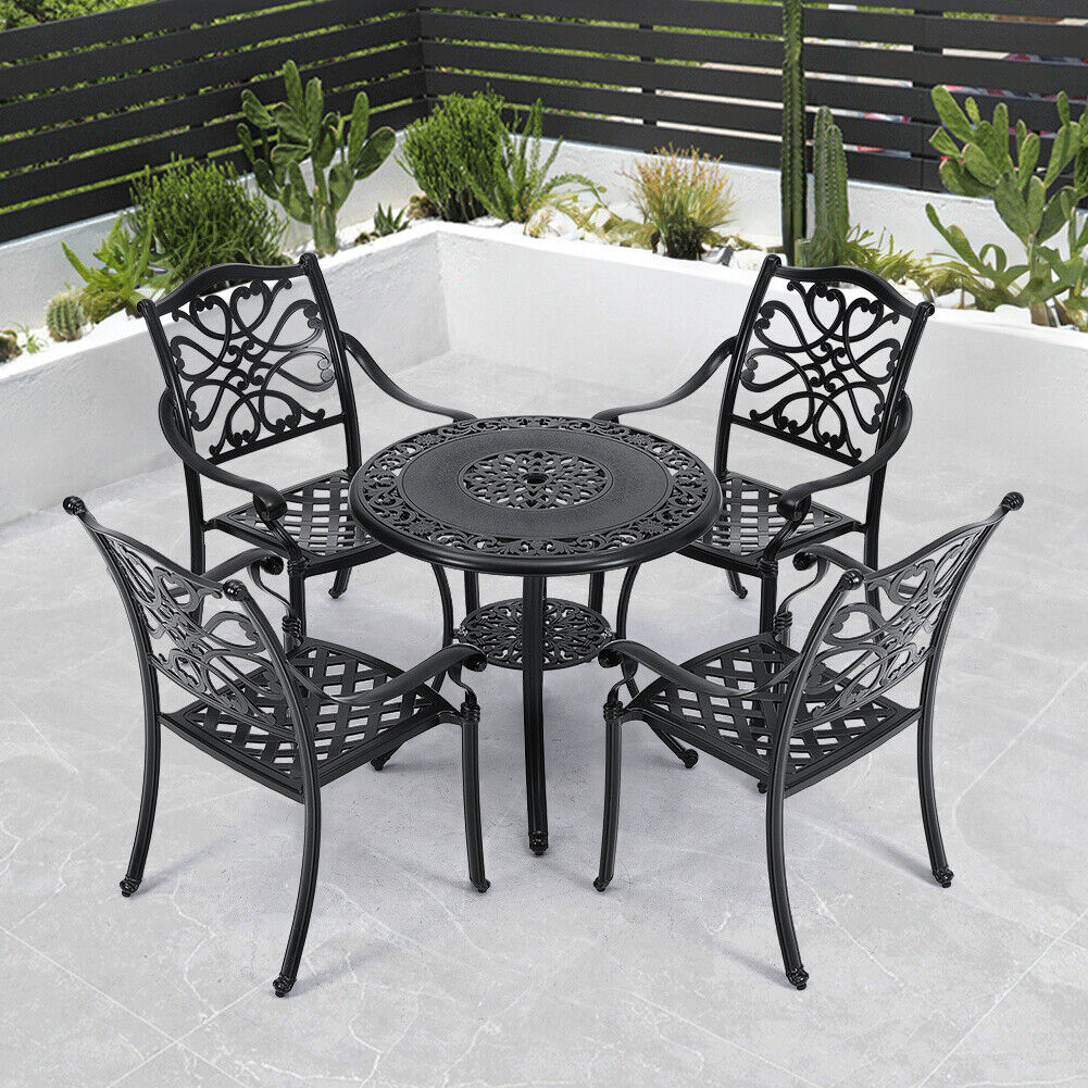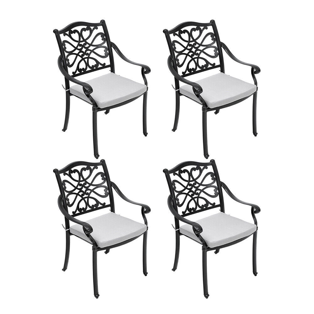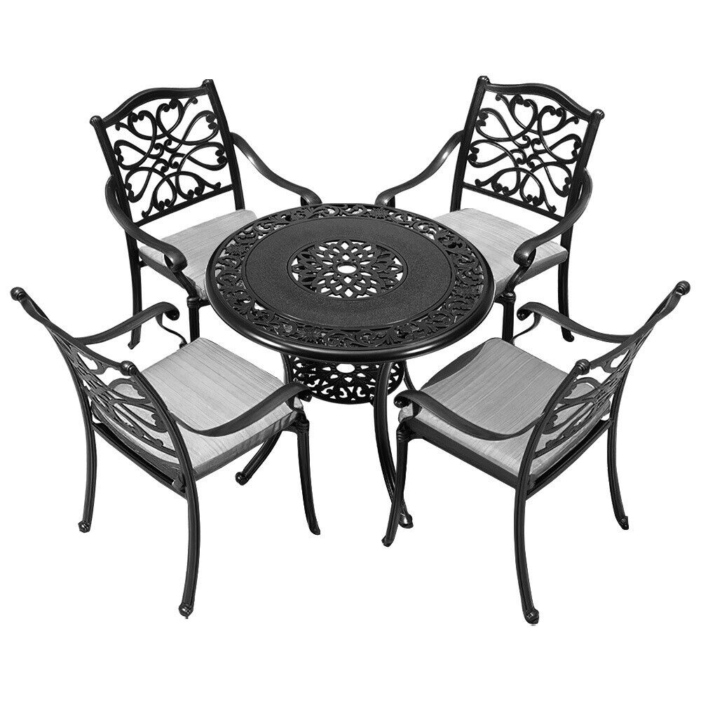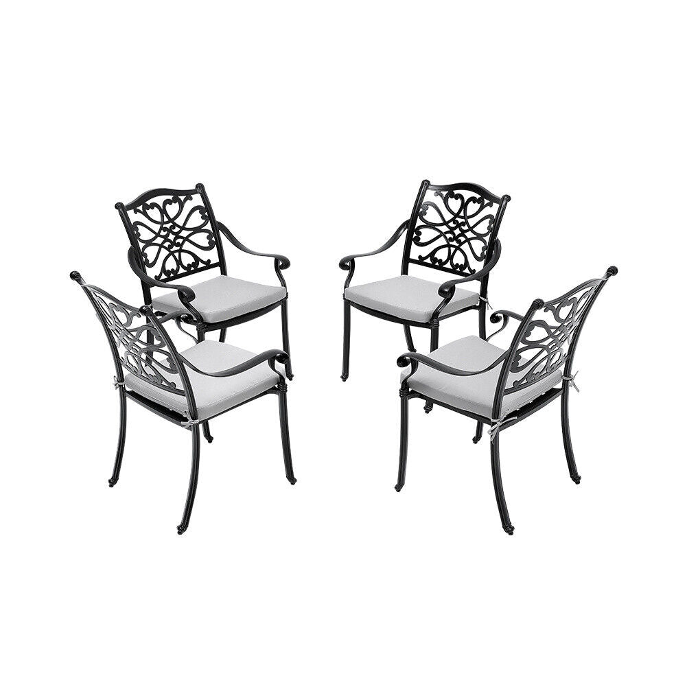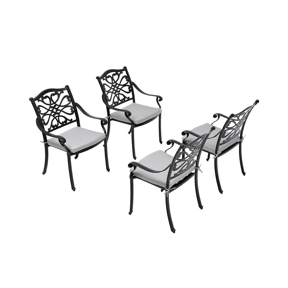5XCast Aluminium Furniture Bistro Set Garden Outdoor Table & 4 Chair w/Cushion