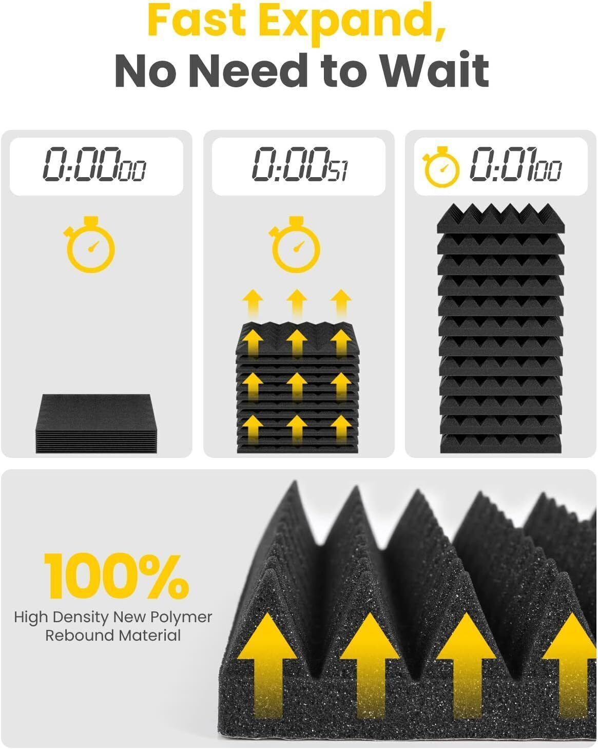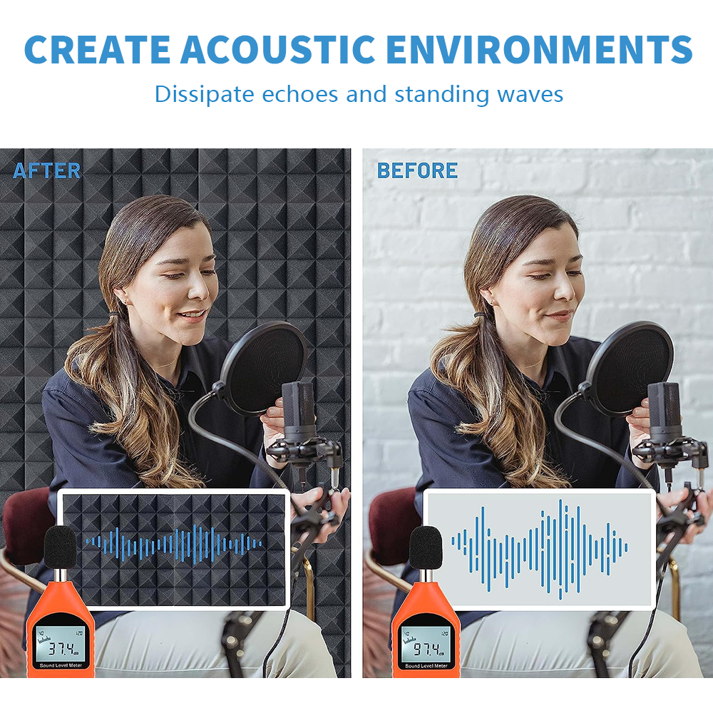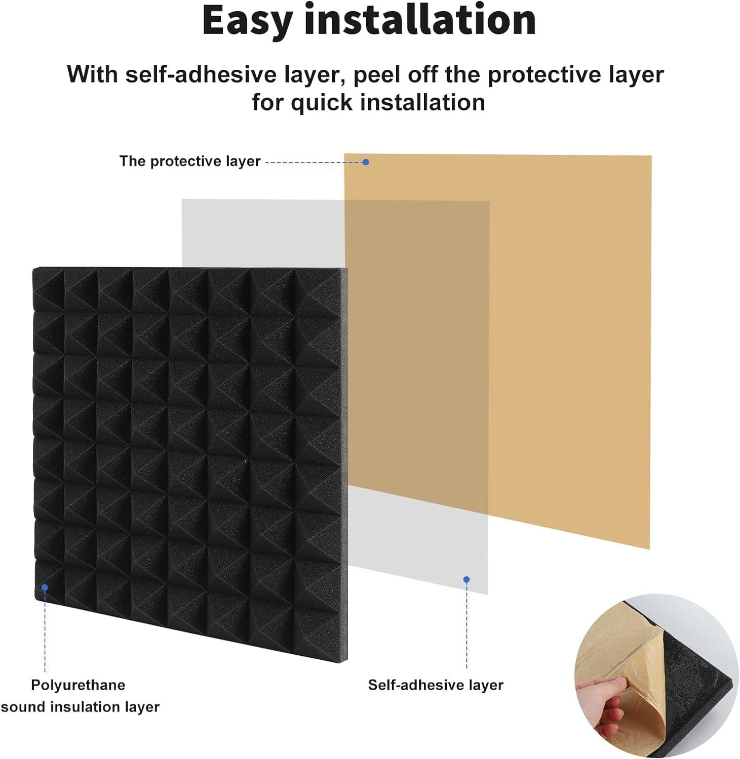 6-48x Self Adhesive Acoustic Foam Panels Studio Soundproofing Foam Tiles Pads