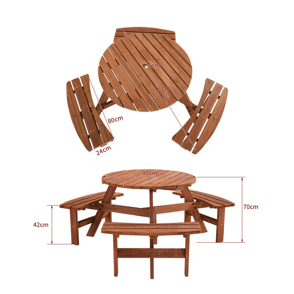 6 / 8 SeaterS Wooden Furniture Set Pub Bench Round Outdoor Picnic Table Garden