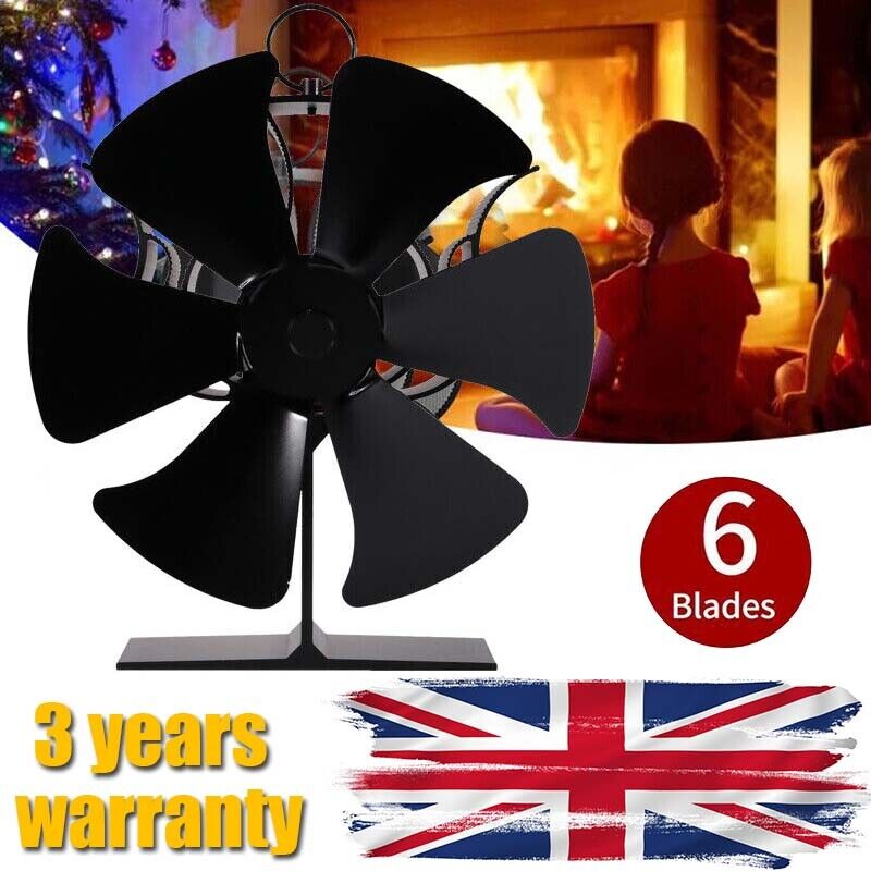 6 Blade Heat Powered Stove Top Fan For Wood Burner Log Burning Fire Eco Friendly