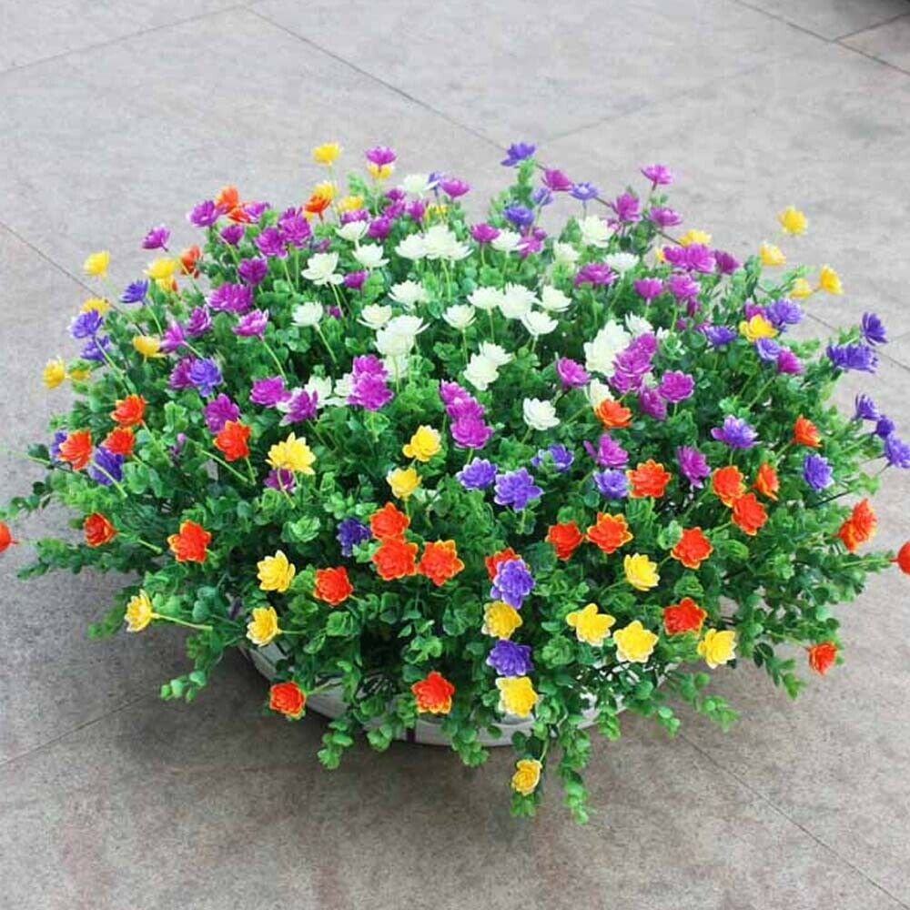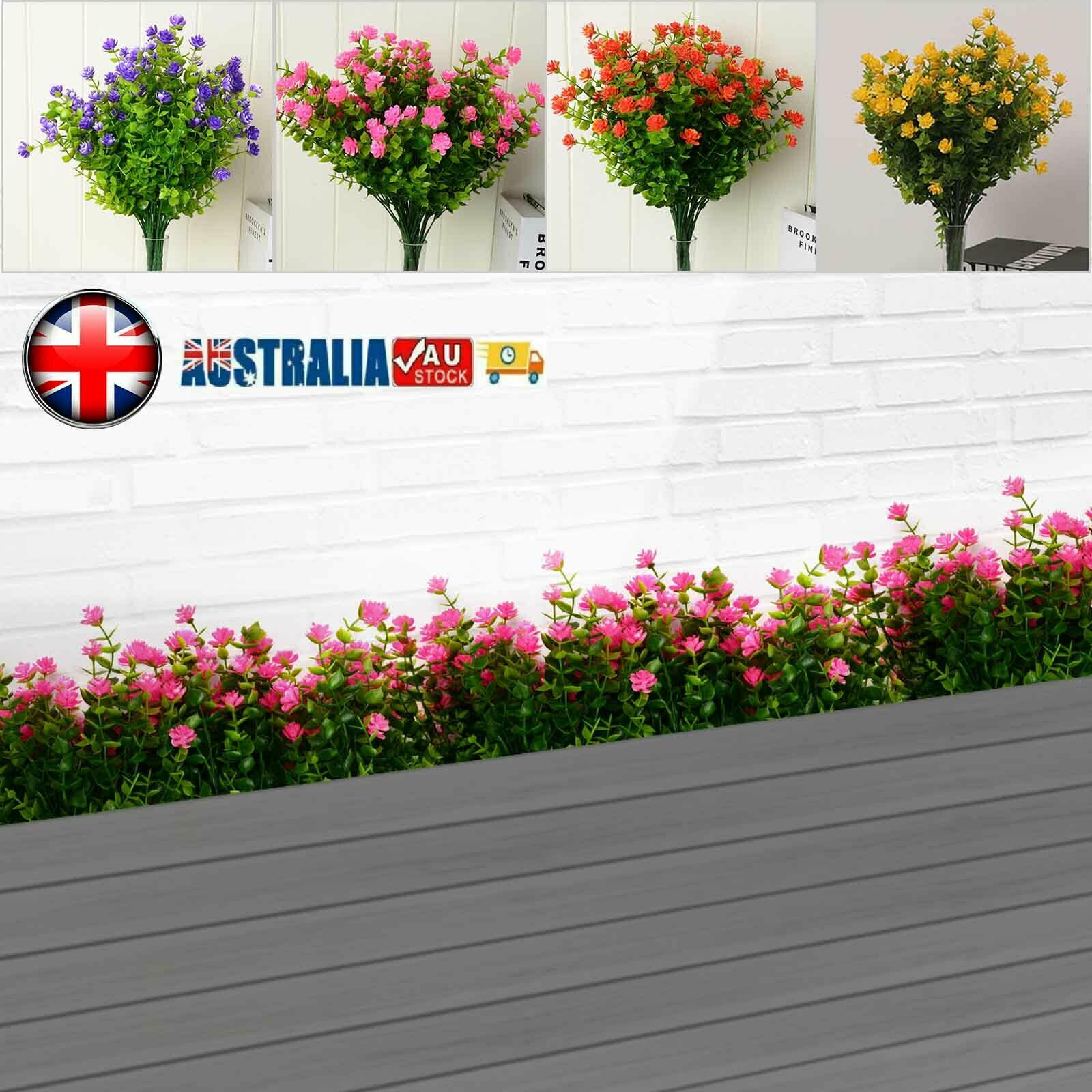 6 Bundles Artificial Flowers Plastic Fake Resistant Outdoor Plants Faux UV UK