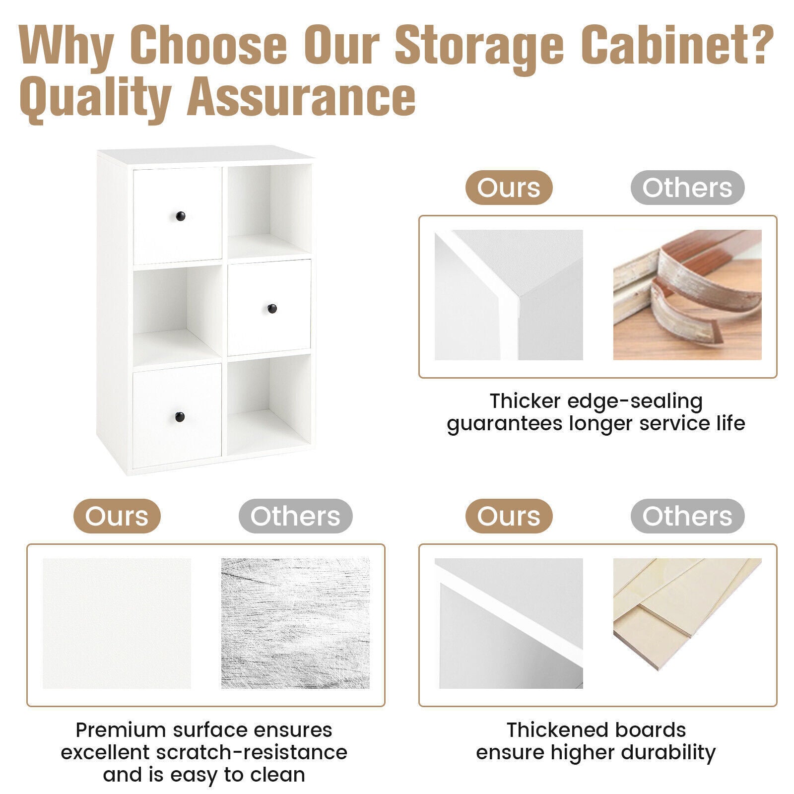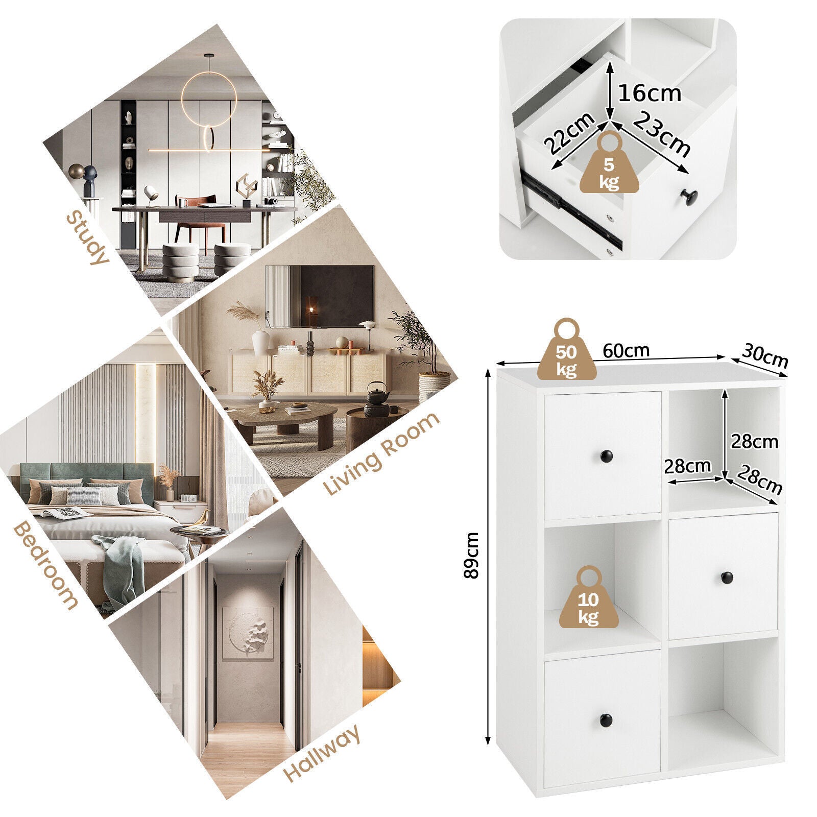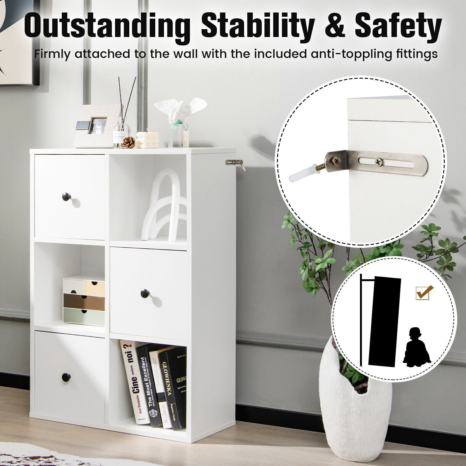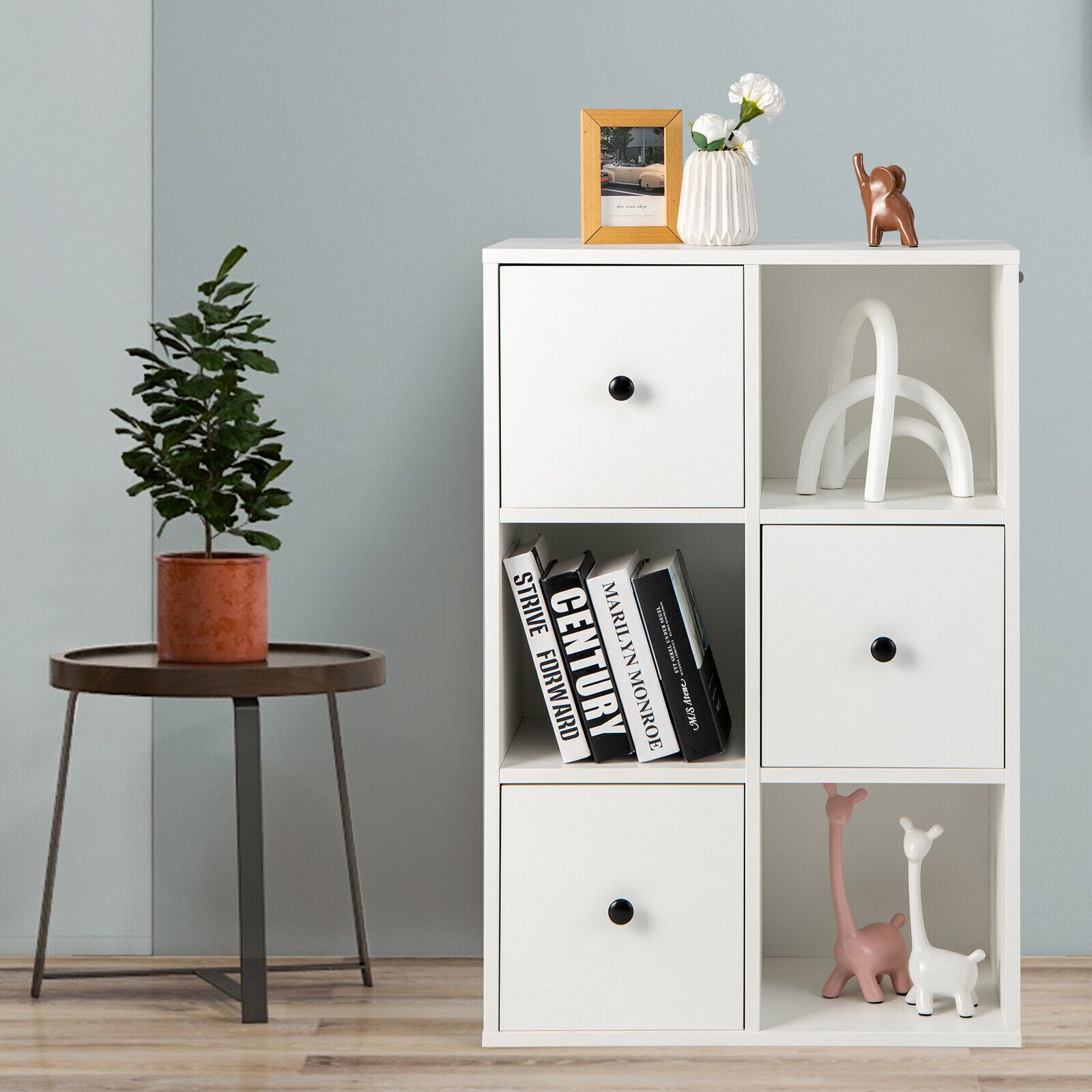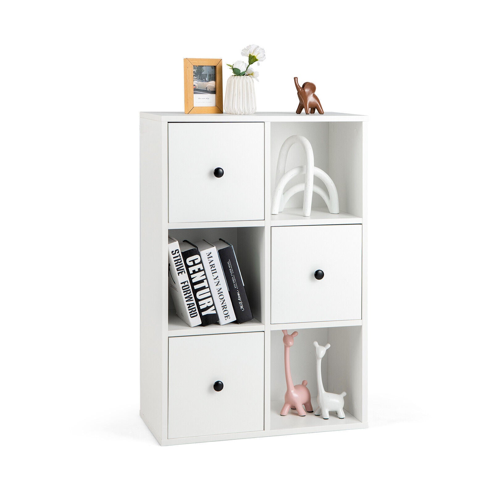 6 Cube Floor Standing Bookcase Cabinet 3-Tier Storage Organizer Display Shelf