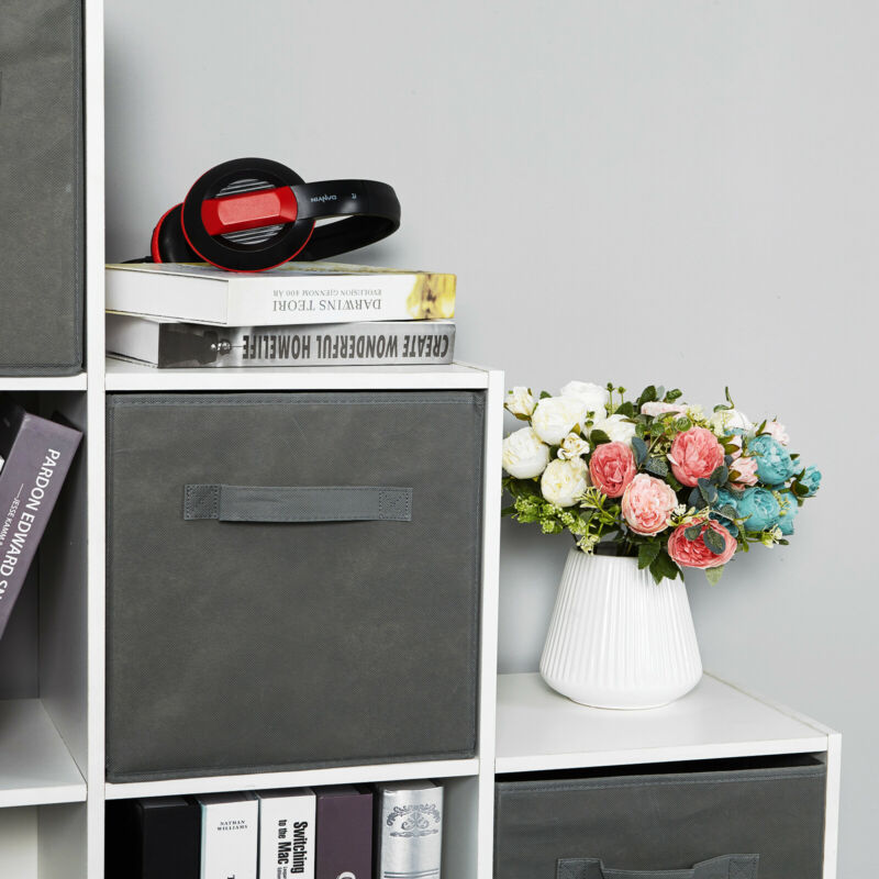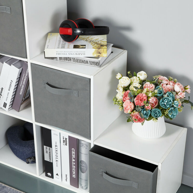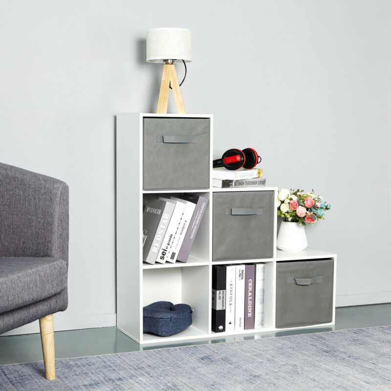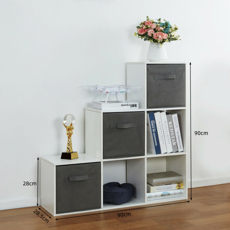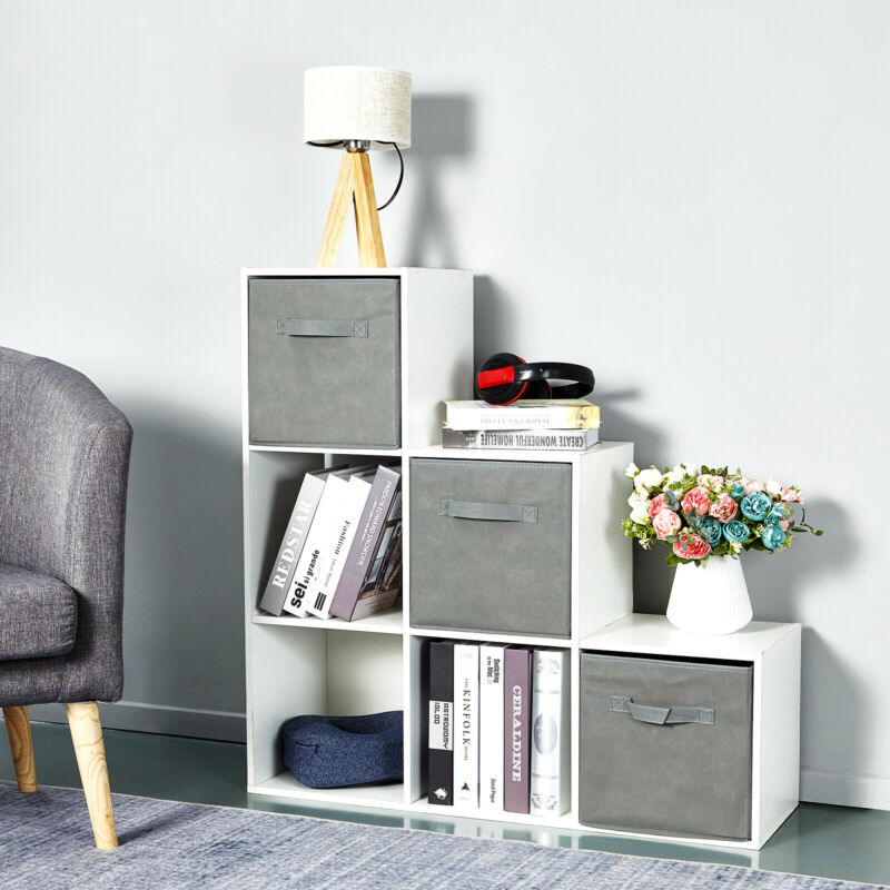 6 Cube Wooden White Bookcase Shelving Unit Display Storage Shelf w/Canvas Basket