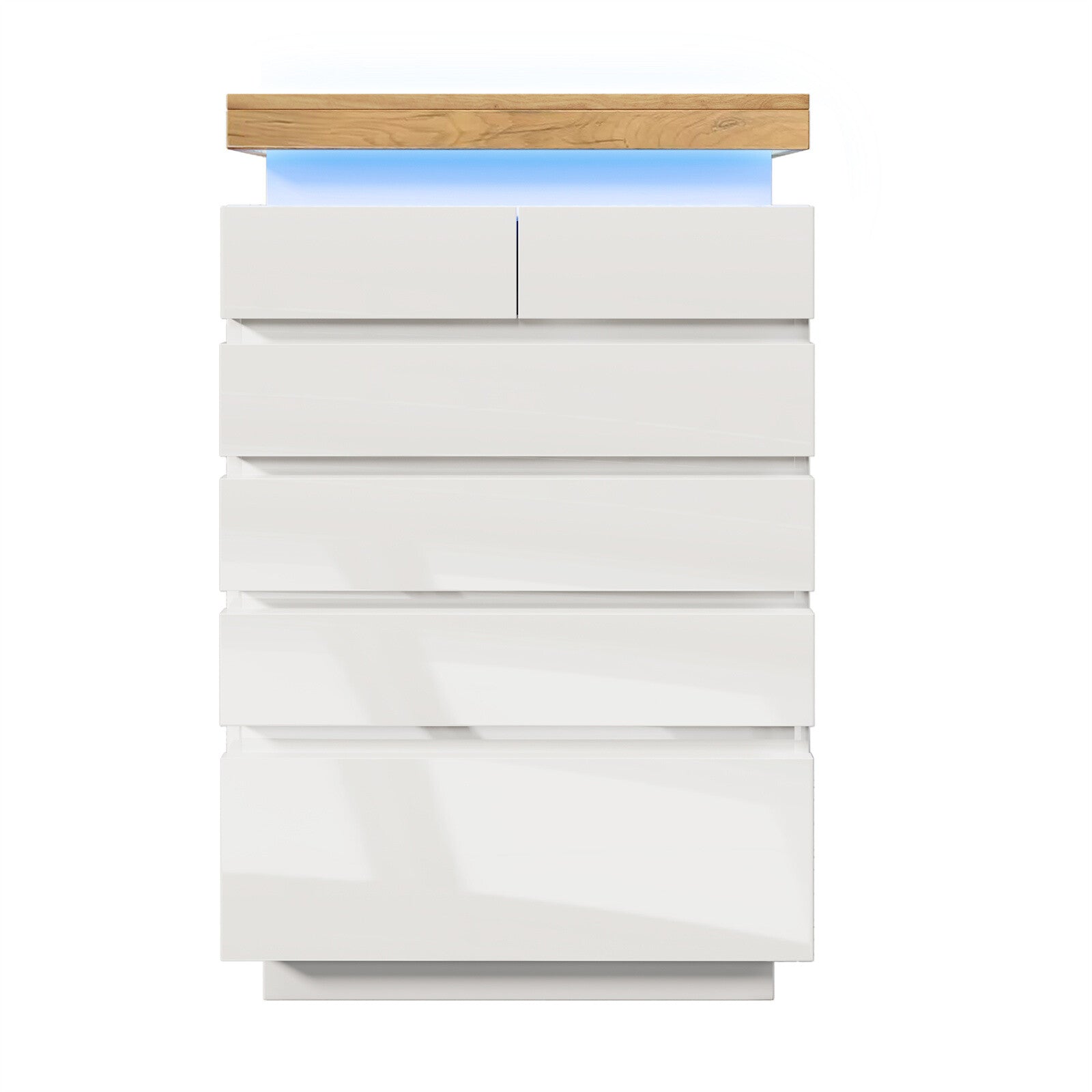 6 Drawer Chest of Drawers Sideboard with LED Storage Cabinet High Gloss White