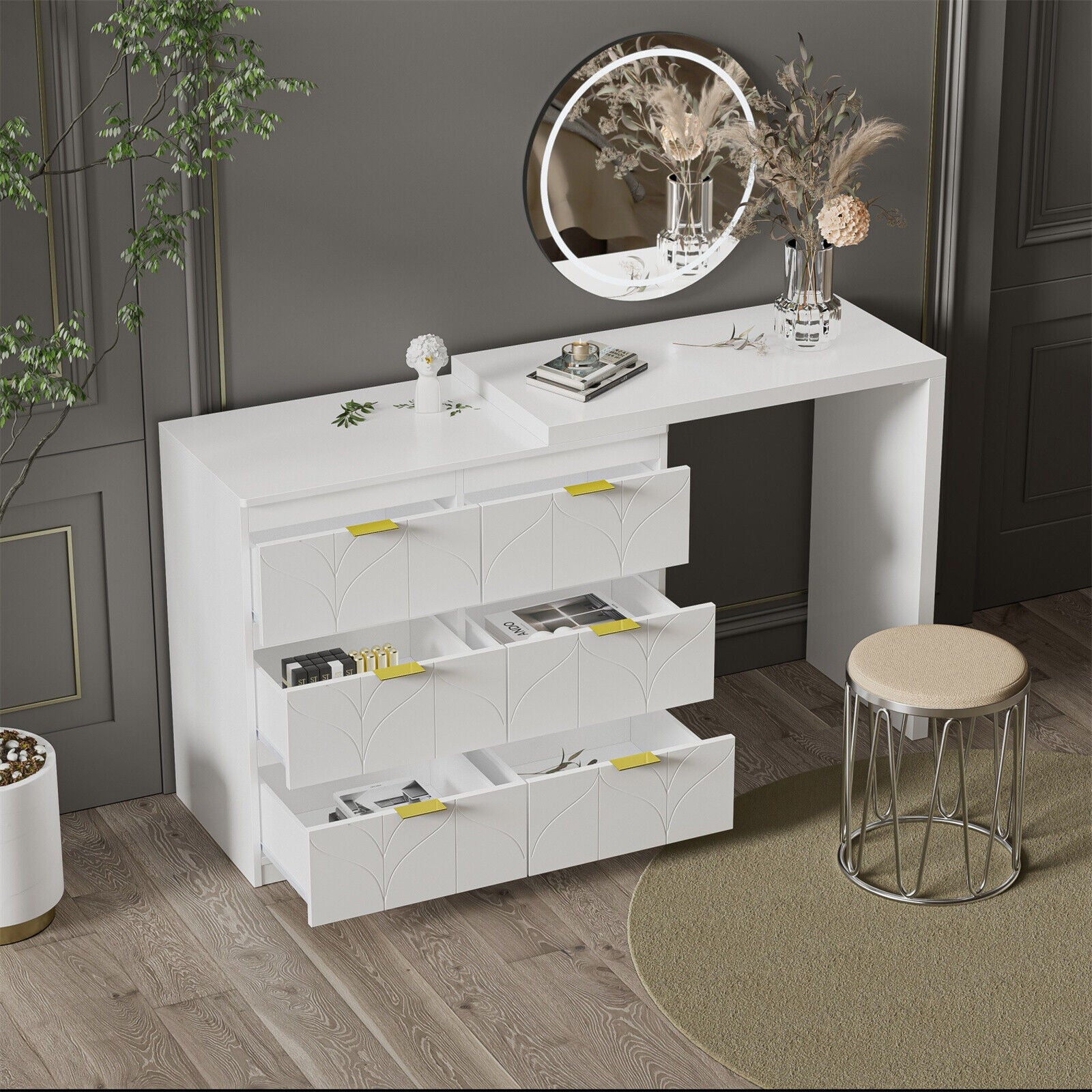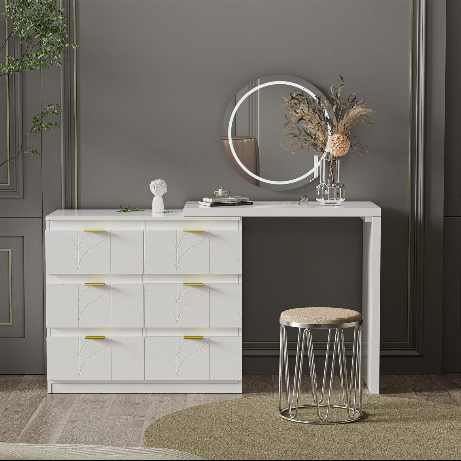 6 Drawer Dressing Table Makeup Desk Modern Vanity Table Bedroom Furniture White