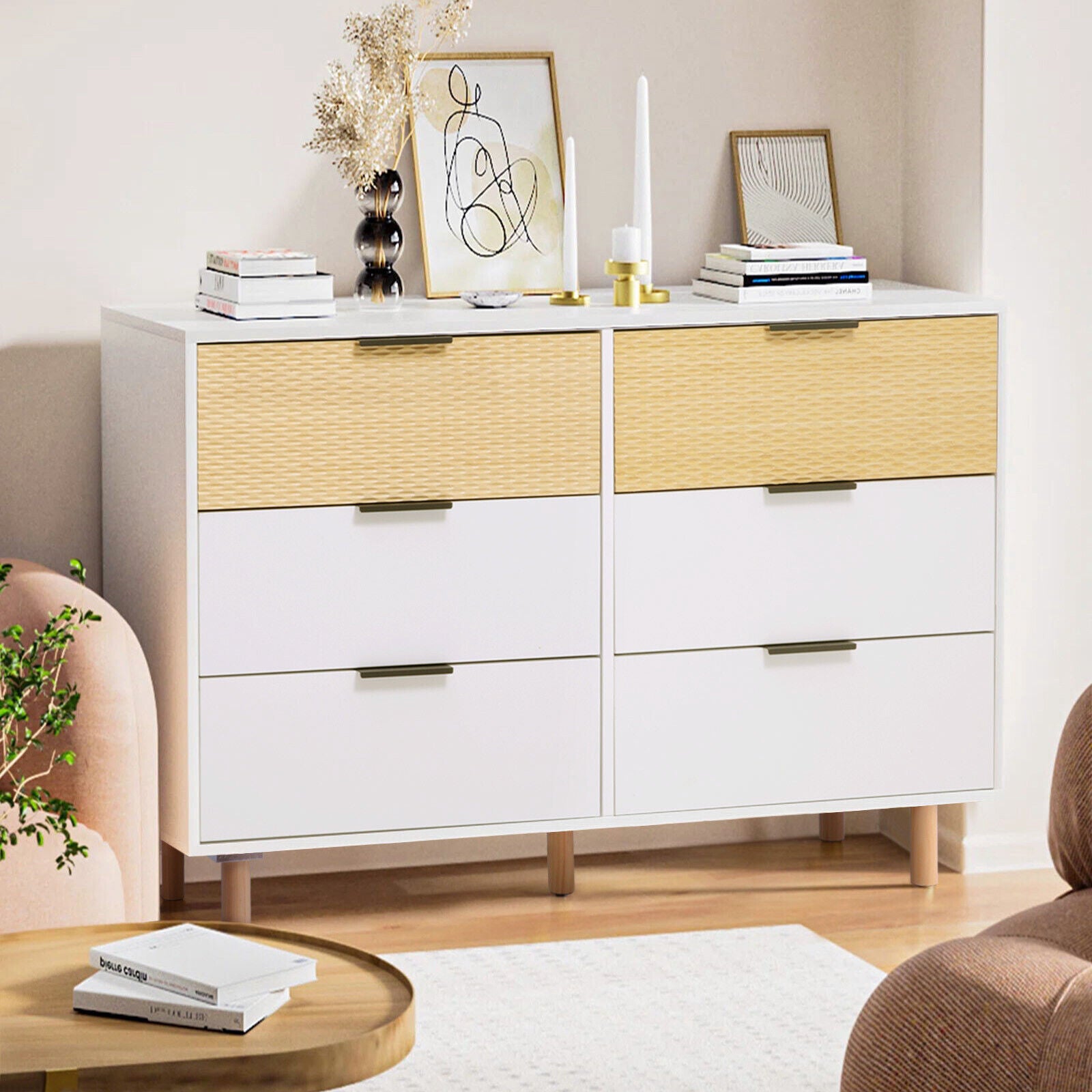 6 Drawer Wooden Bedroom Chest Cabinet Table Modern Wide Storage Cupboard Closet